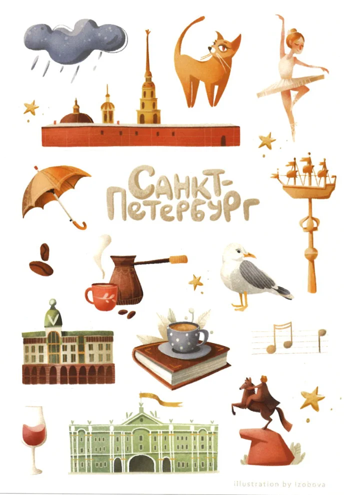 Стикерпак с Петербургом от бренда Подписные изделия - уникальная коллекция стикеров, посвященных Санкт-Петербургу. Формат листа - А6, материал - бумага. Каждый стикер вырезан по контуру, что делает их удобными в использовании.