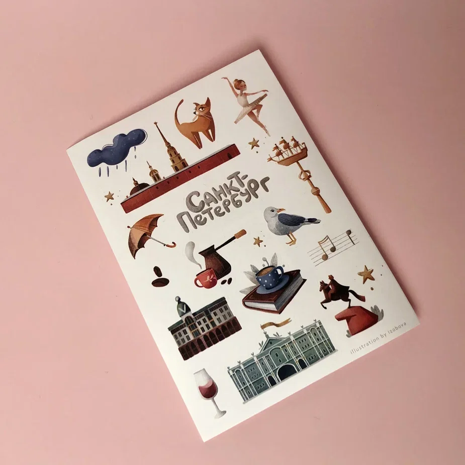 Стикеры легко наклеиваются на любую поверхность - ноутбуки, телефоны, планшеты или дневники. Этот стикерпак также может стать прекрасным подарком для поклонников Санкт-Петербурга.