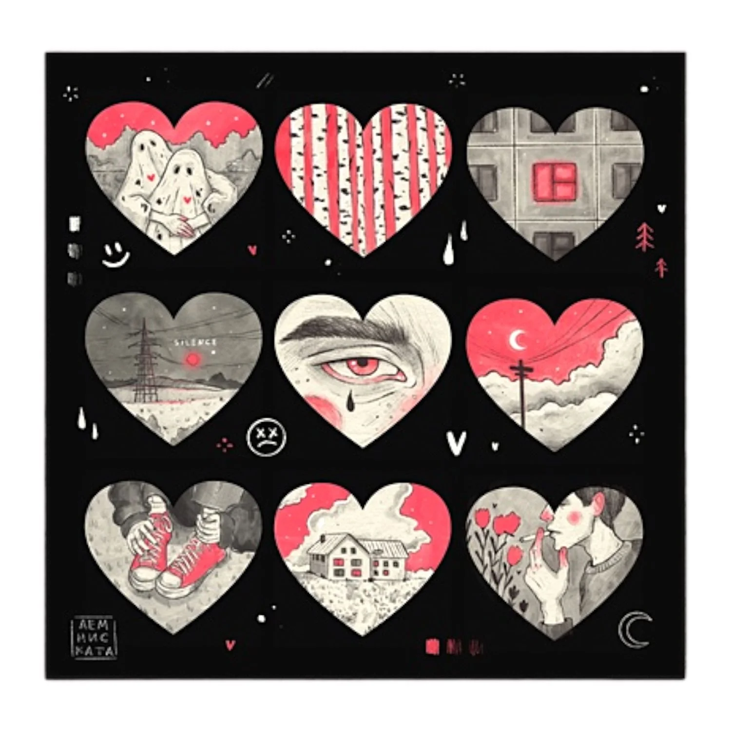 Стикерпак Лемниската «Сердечки», 12 х 12 см
