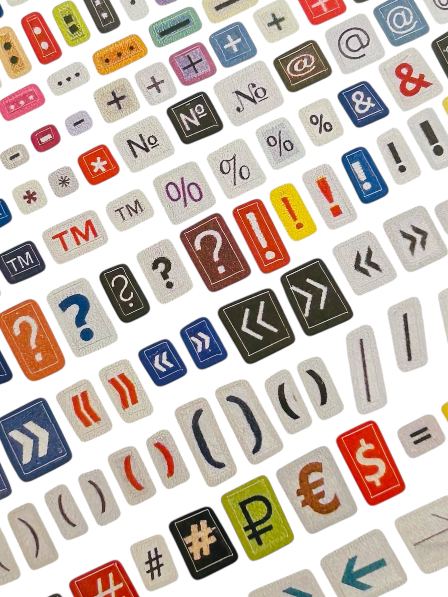 Яркий и стильный стикерпак, состоящий из различных символов, выполненных в разноцветных оттенках.
