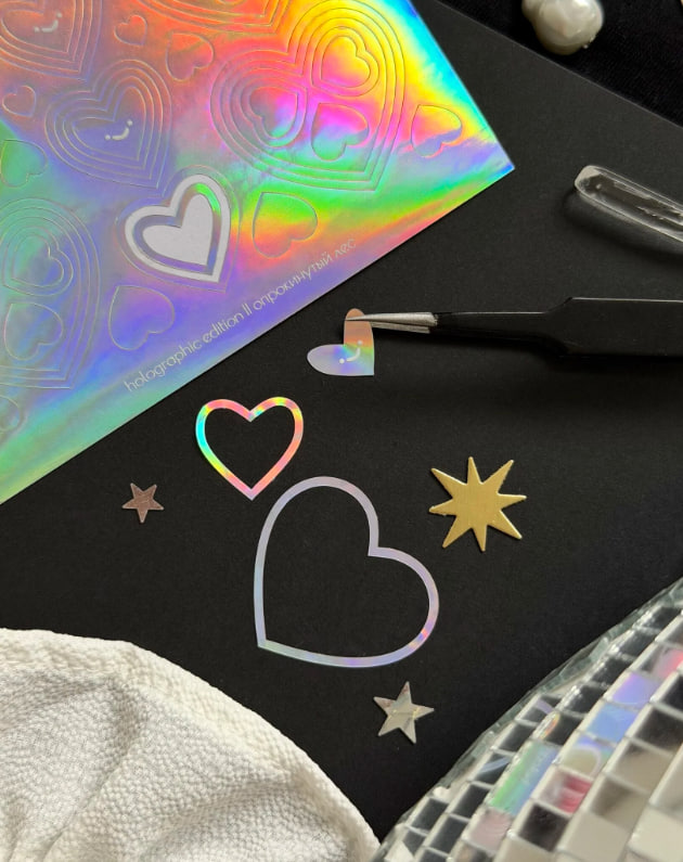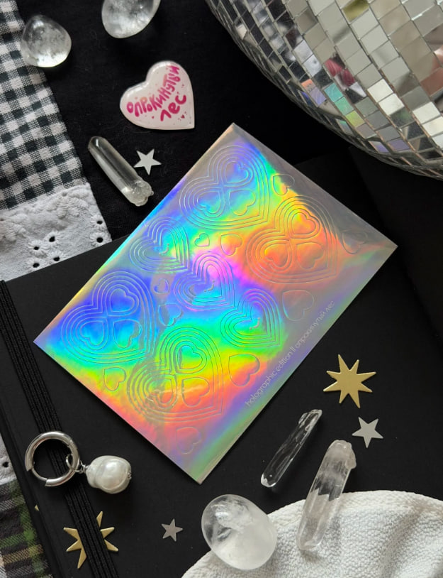Стикерпак с голографическими сердечками от бренда Опрокинутый лес