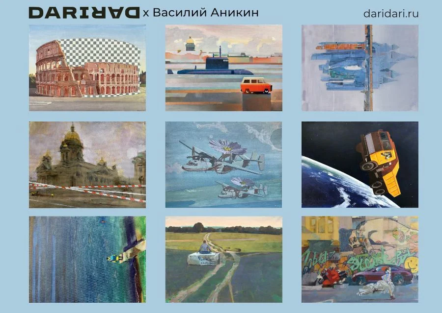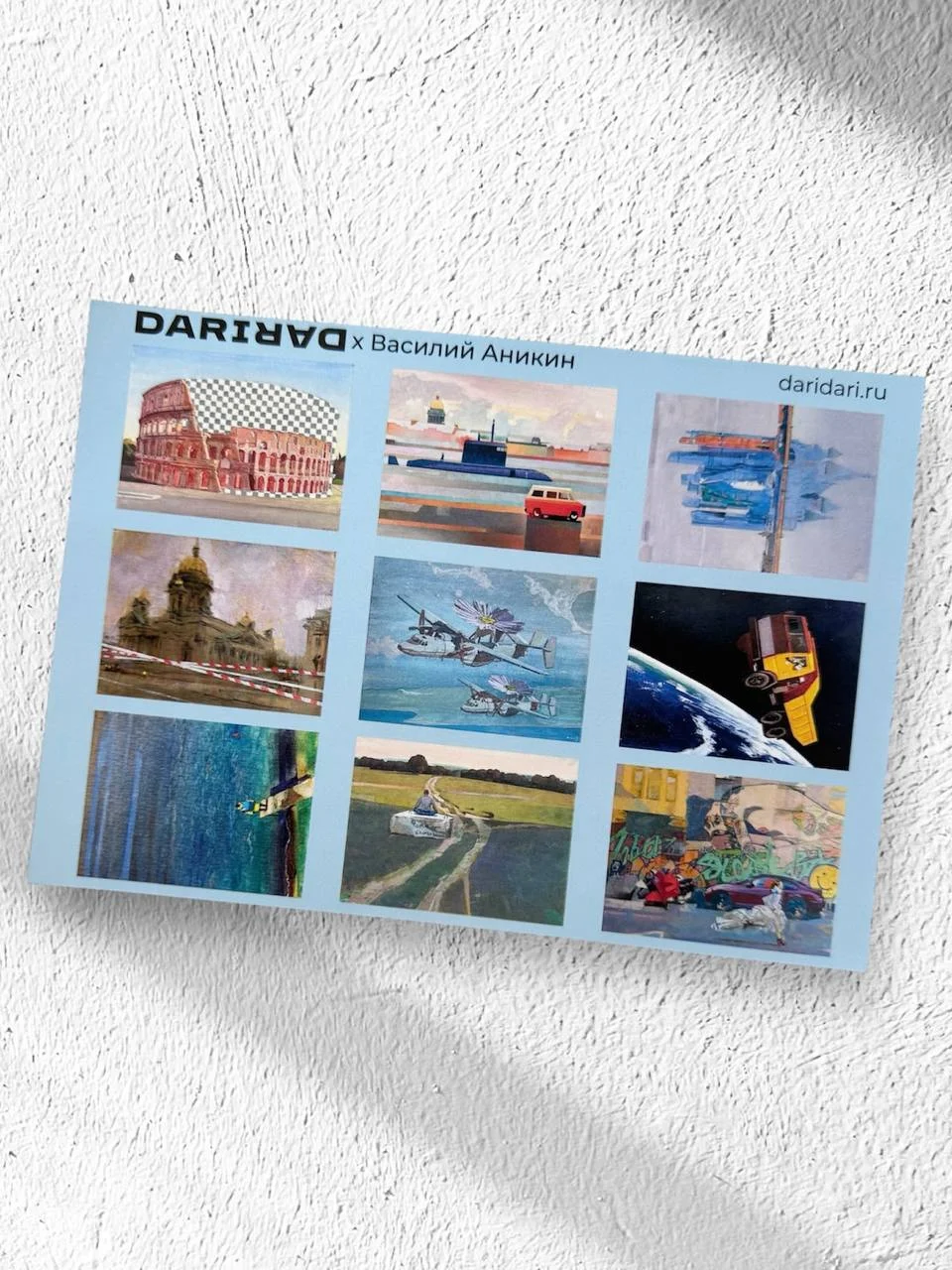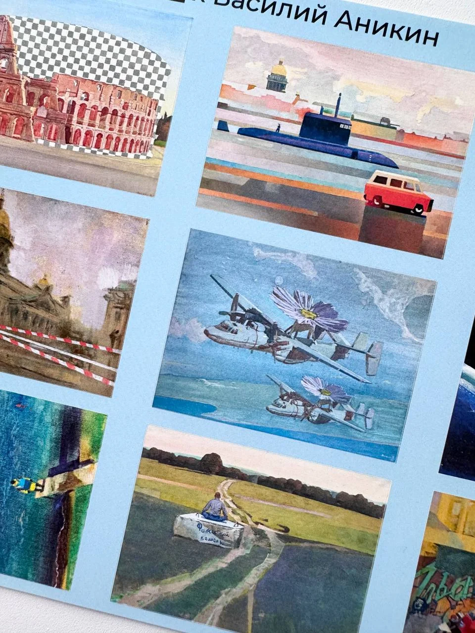 Виниловый стикерпак с картинами современного московского художника Василия Аникина.