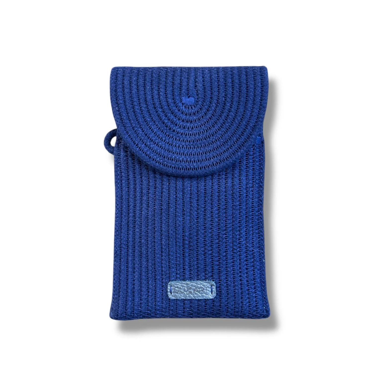 Сумка-чехол для телефона из 100% хлопкового шнура, бирка из натуральной кожи.
