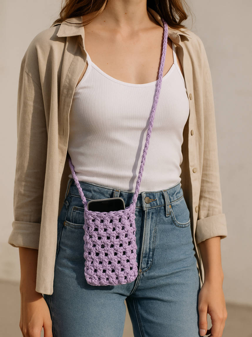 Сумка-чехол для телефона из хлопкового шнура от бренда svyazochka, размер 16*10 см
