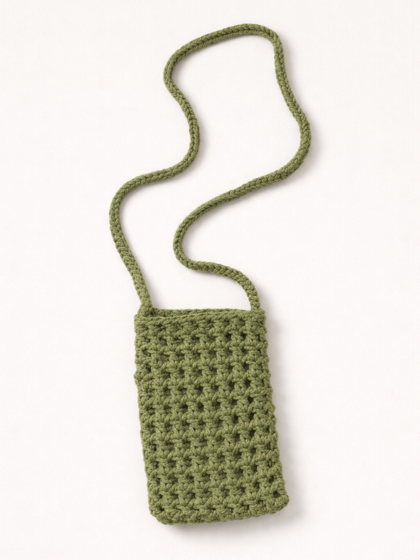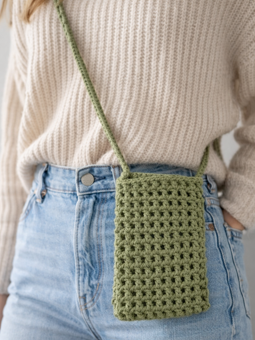 Сумка для телефона вязаная, зелёная