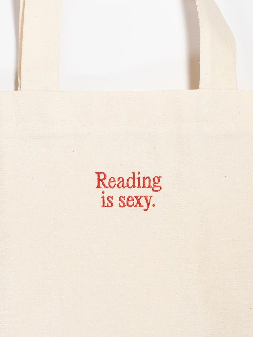 Сумка шоппер Подписные изделия, «Reading is sexy», вышивка, белый