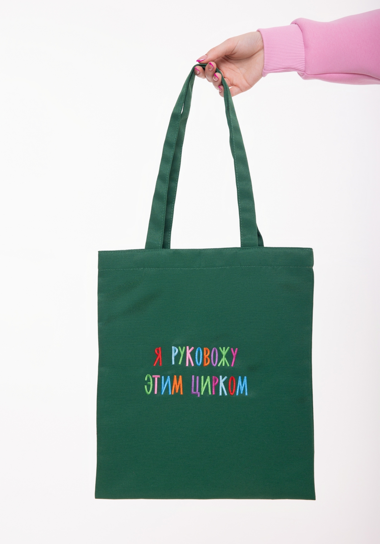 Сумка шоппер с надписью «Я руковожу этим цирком», хлопок, зелёный