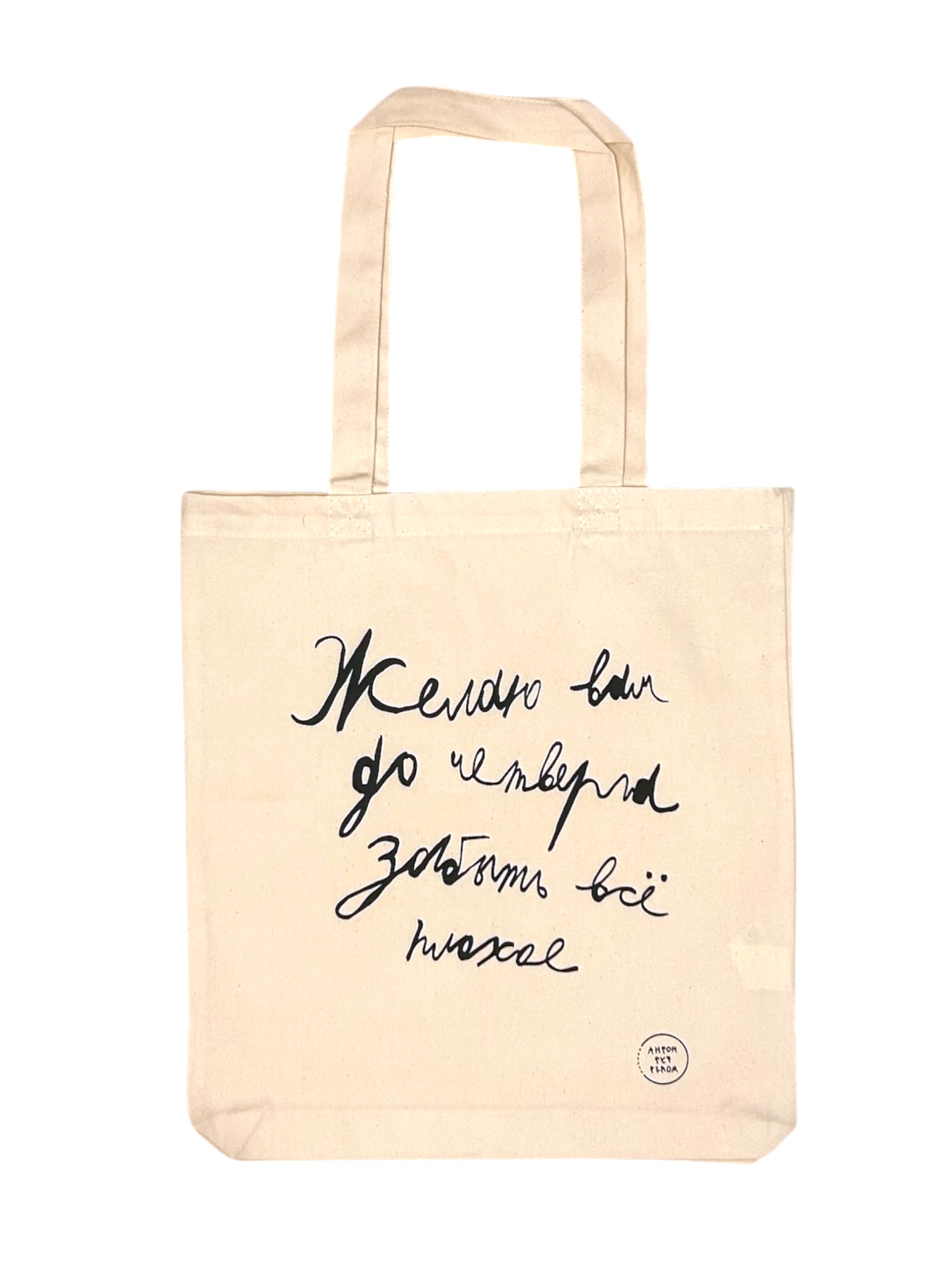 Сумка шоппер с надписью «Желаю вам до четверга забыть всё плохое», хлопок, белый