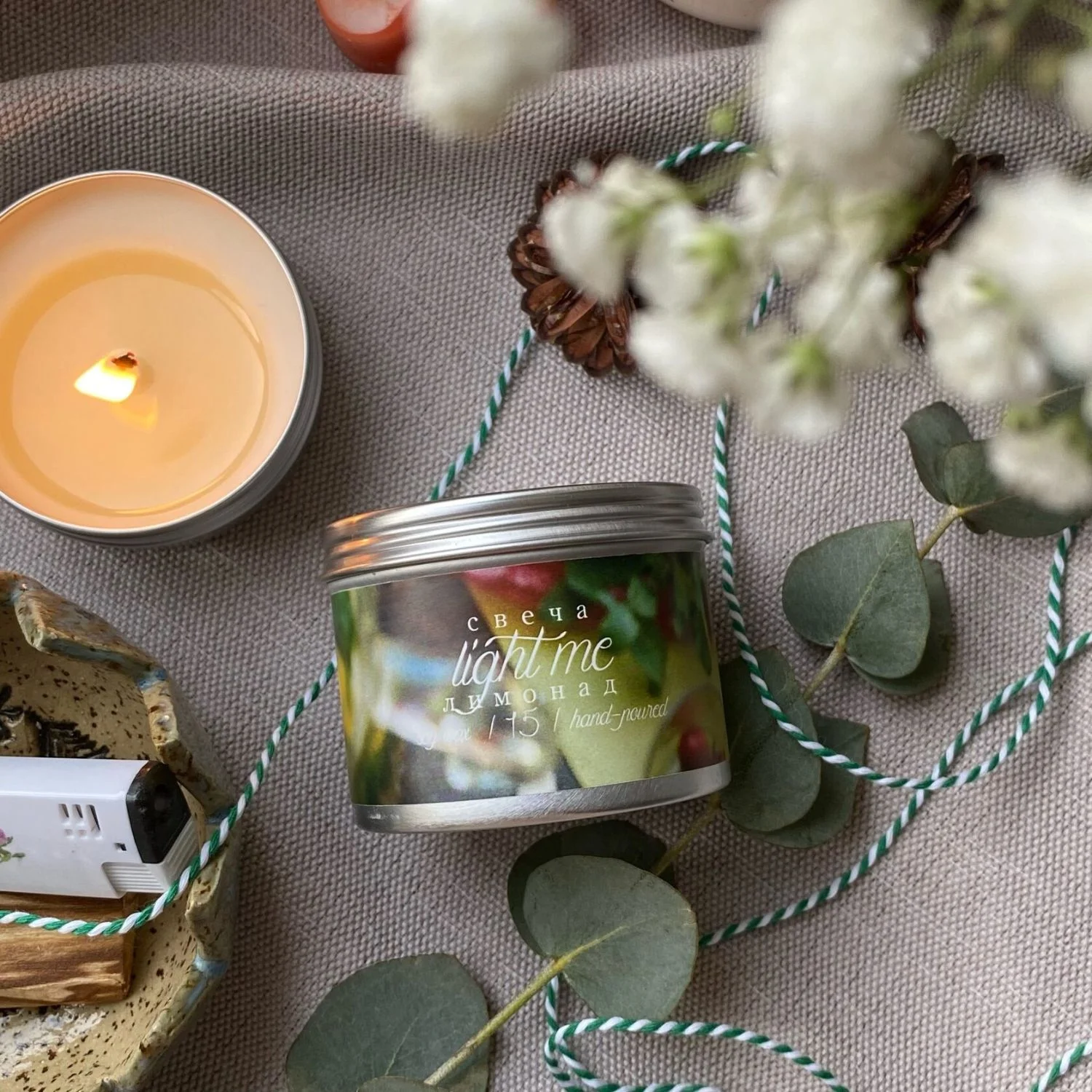 Состав: соевый воск, ароматическое масло. Хлопковый фитиль.