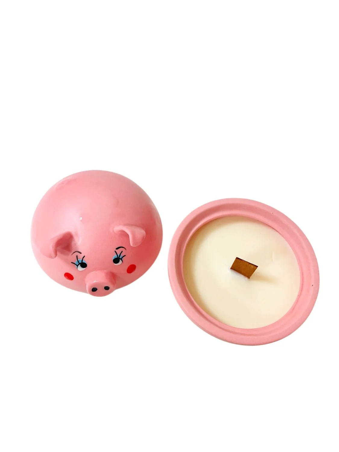Свеча-шкатулка ручной работы «Поросёнок», розовая, фарфор
