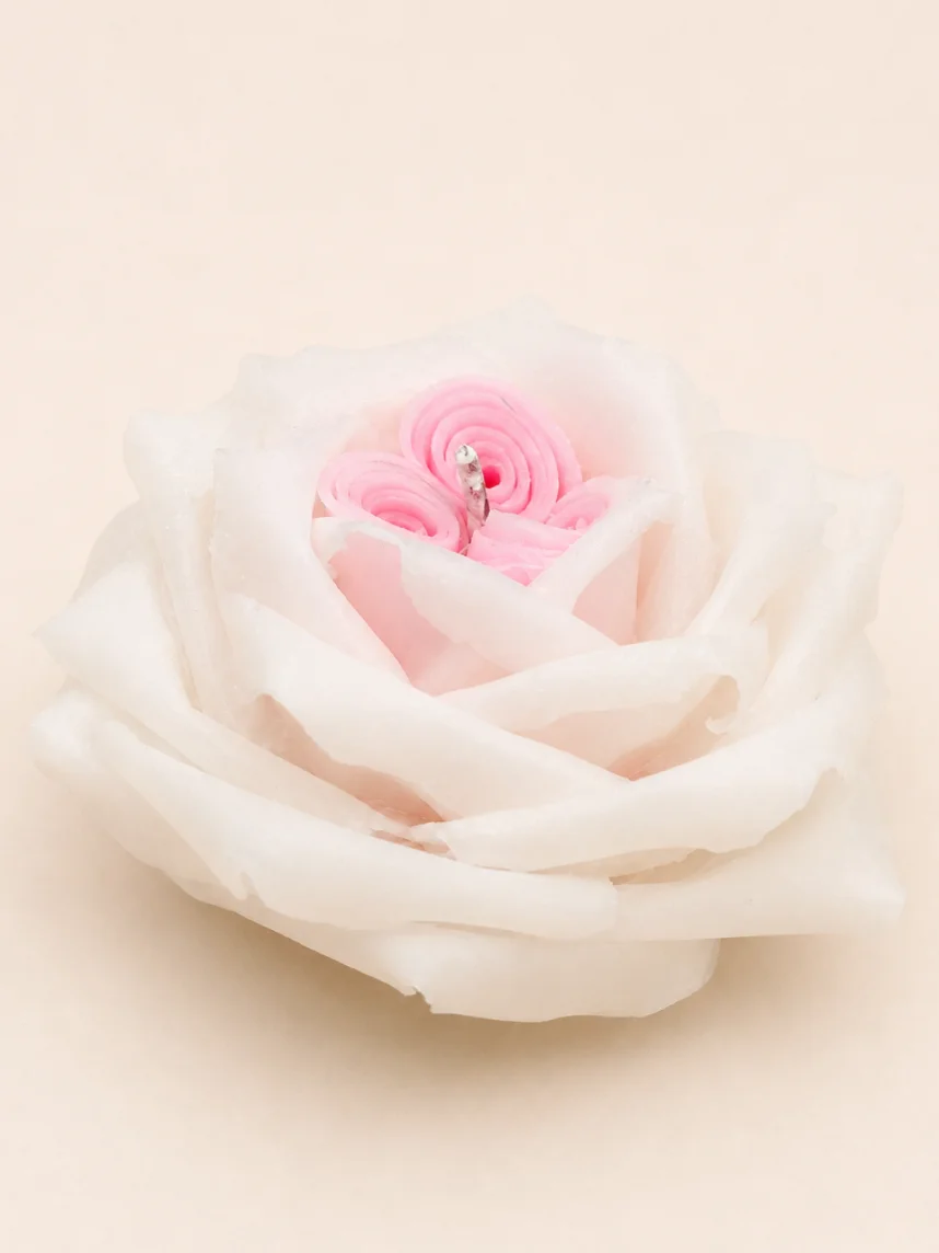 Свеча цветок ручной работы DARI DARI «Роза двойная», бело-розовая
