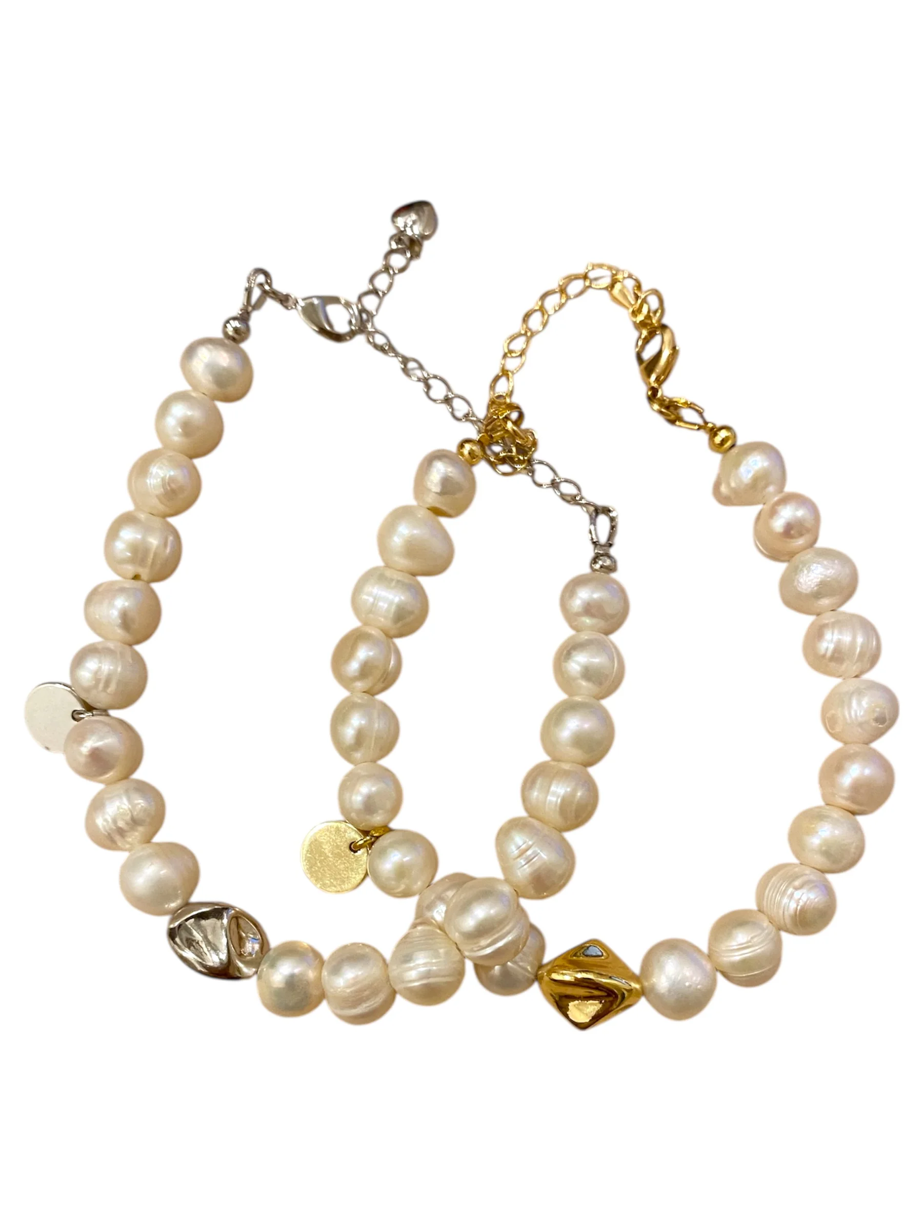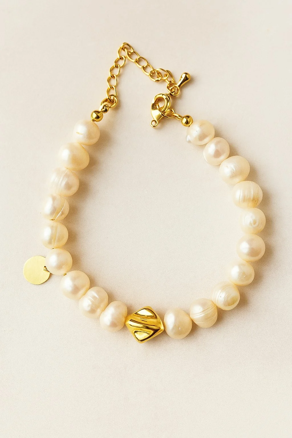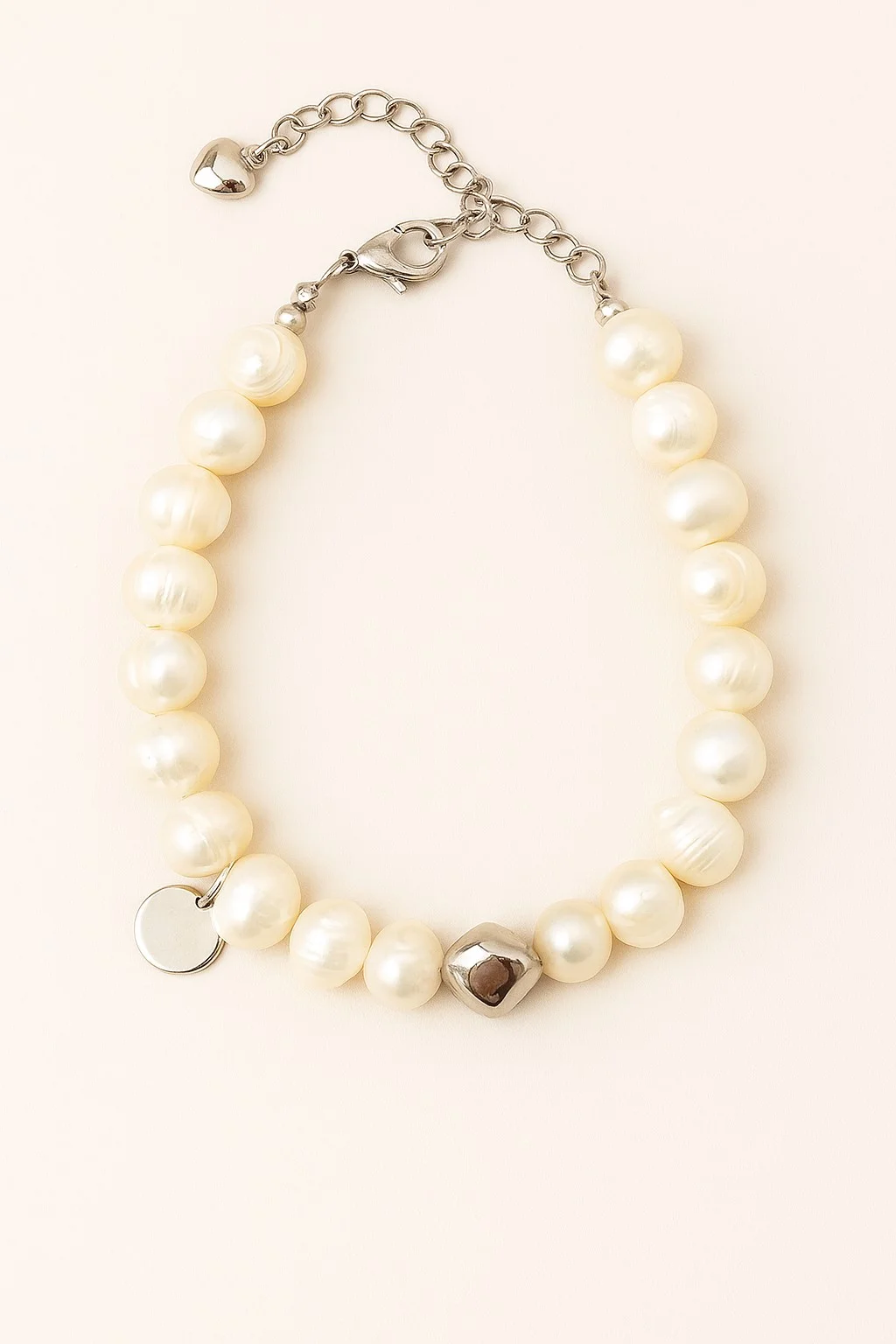 Сверкающий браслет из жемчуга со вставкой и монеткой.