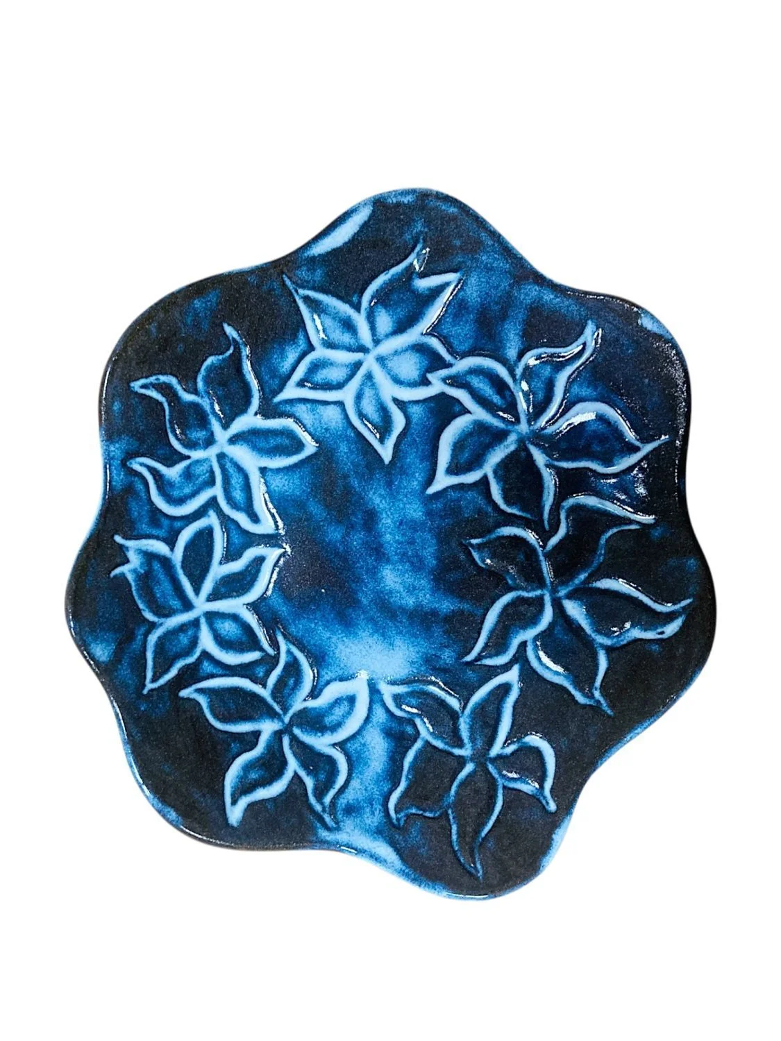 Тарелка фигурная ручной работы «Венок из лилий», керамика, 18 см