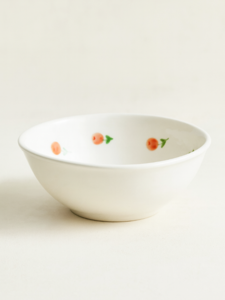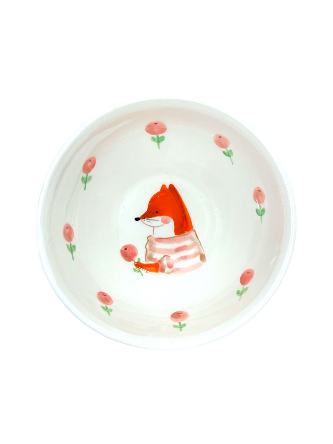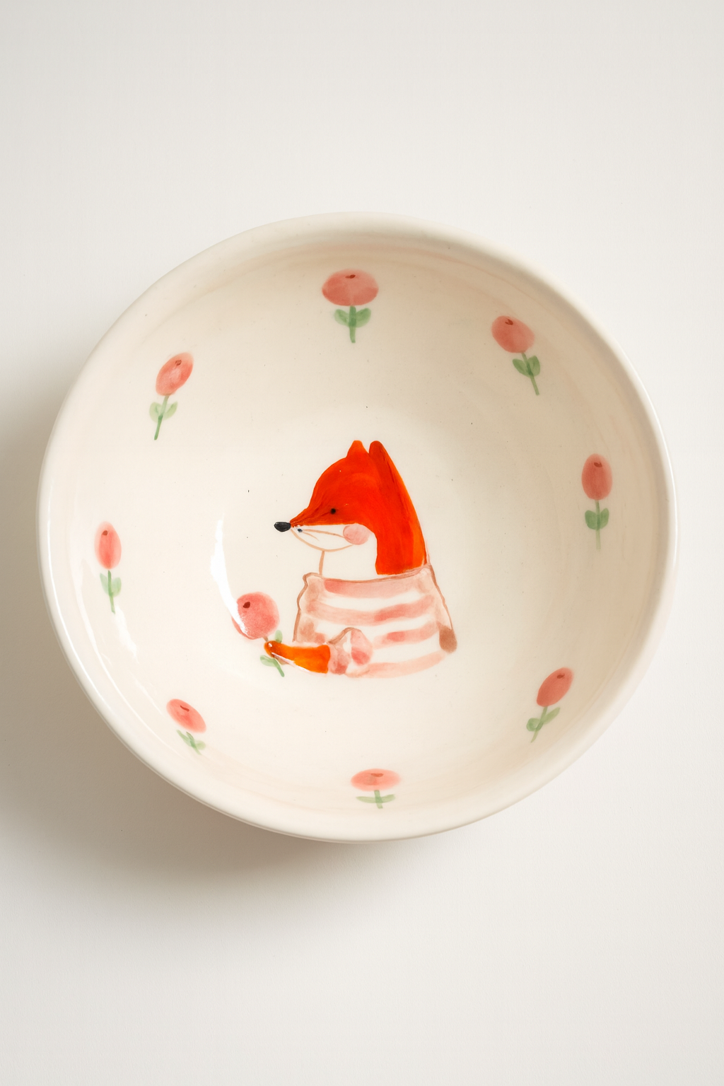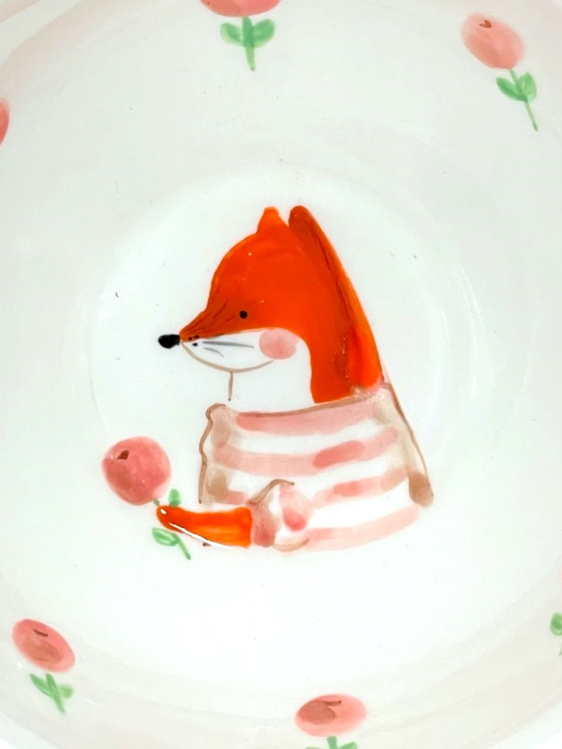 Тарелка глубокая ручной работы Лисёнок с клюквой, белая, фарфор, 12 см