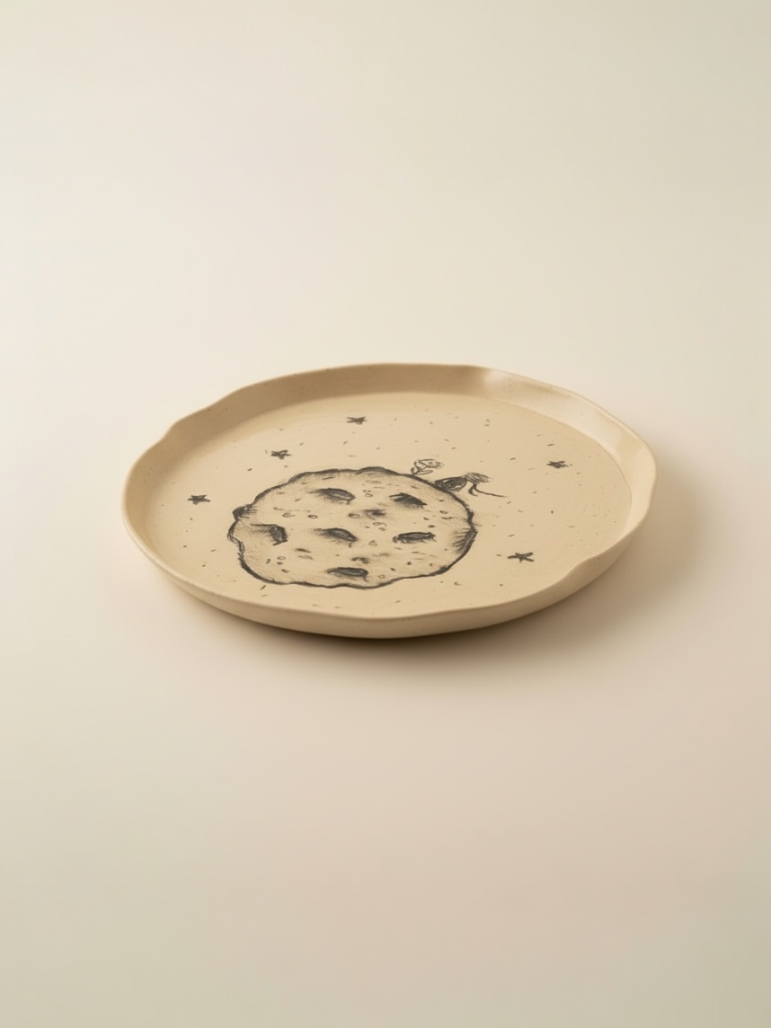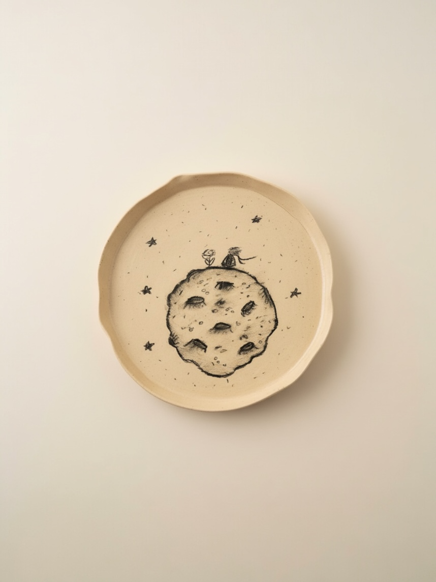 Тарелка «Маленький принц» — это декоративное изделие, созданное по мотивам иллюстраций Антуана Сент-Экзюпери. На ней изображены Маленький принц и цветок.