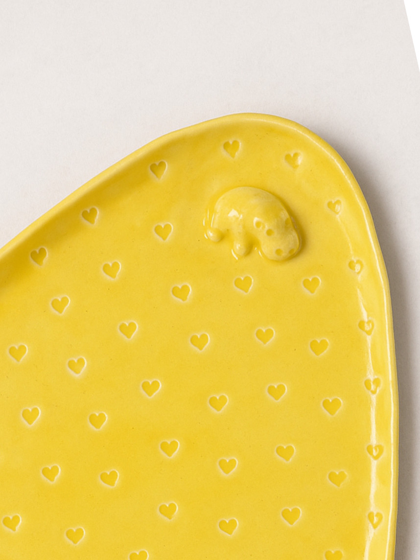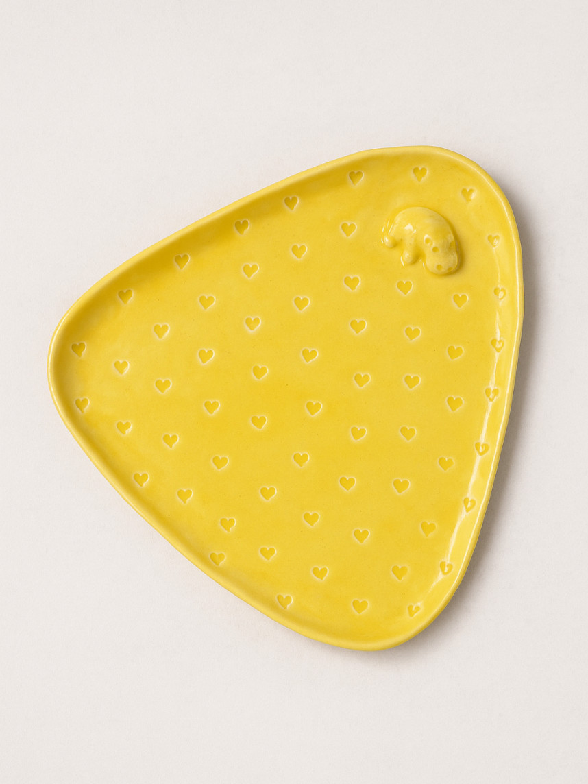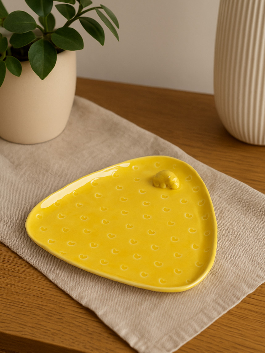 Тарелка ручной работы Бегемотик с сердечками, жёлтая, керамика, 19 см