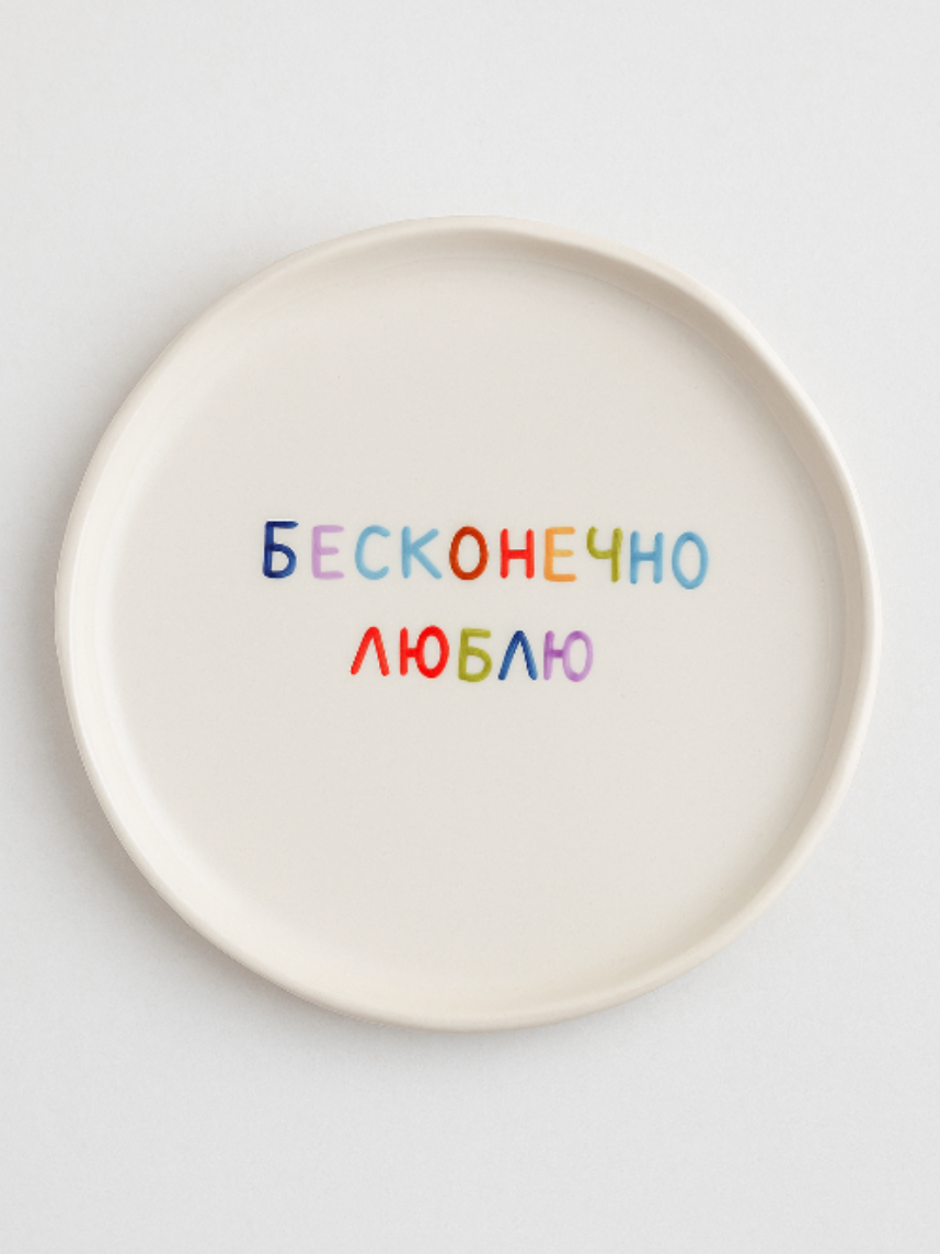 Тарелка ручной работы «Бесконечно люблю» — оригинальное и выразительное изделие из керамики диаметром 18 см.