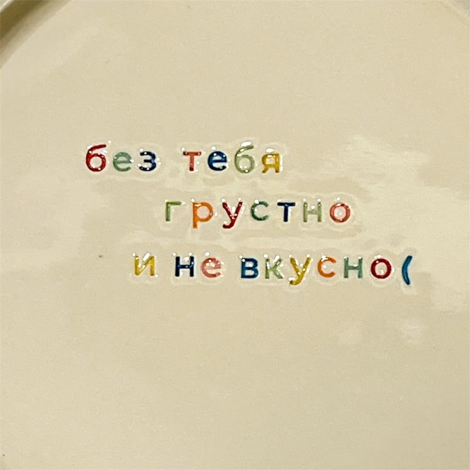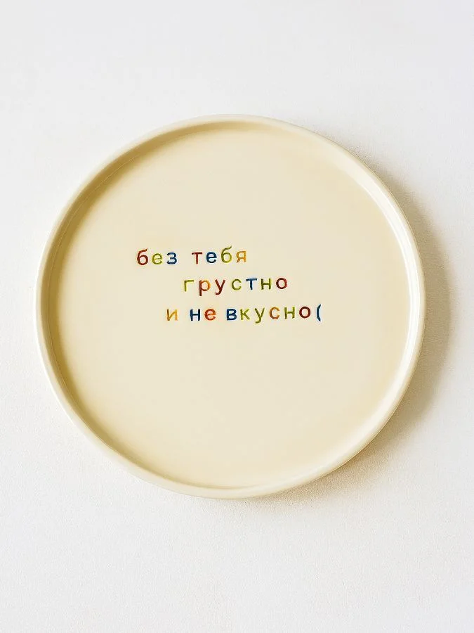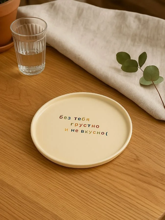 Тарелка ручной работы "Без тебя грустно и не вкусно" от бренда Yellowscoop станет отличным подарком на любой праздник!