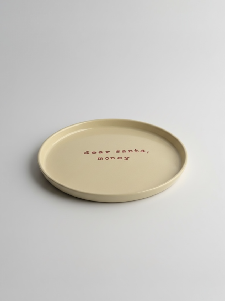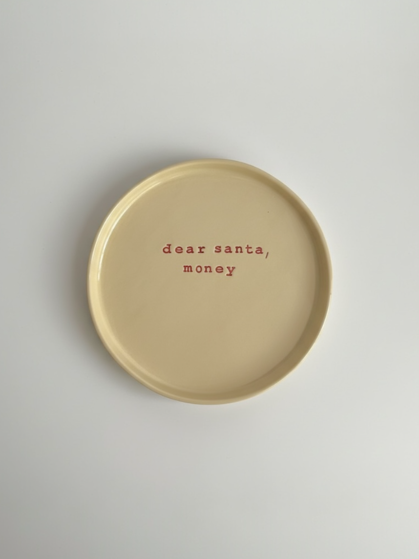 Тарелка ручной работы «Dear Santa, money» от бренда Yellowscoop станет отличным подарком на любой праздник!