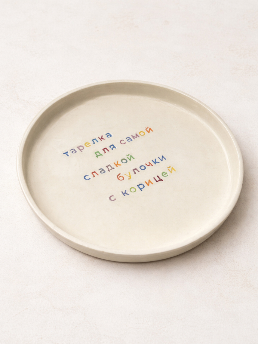 Тарелка ручной работы «Для самой сладкой булочки», керамика