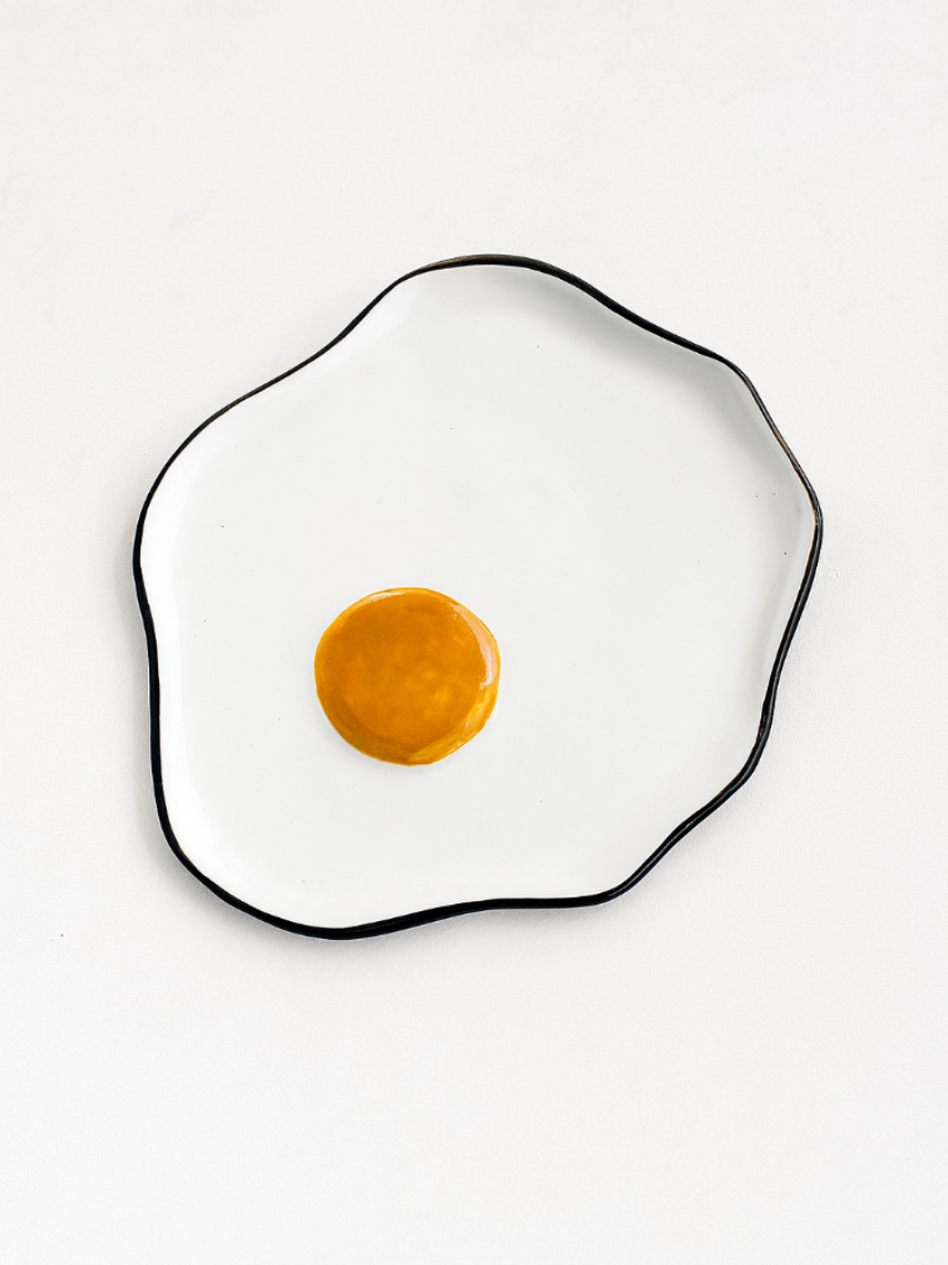 Тарелка ручной работы «Глазунья» бренда Julnika - тарелка на случай когда вы уже встали и завтракаете, а солнце еще не взошло.