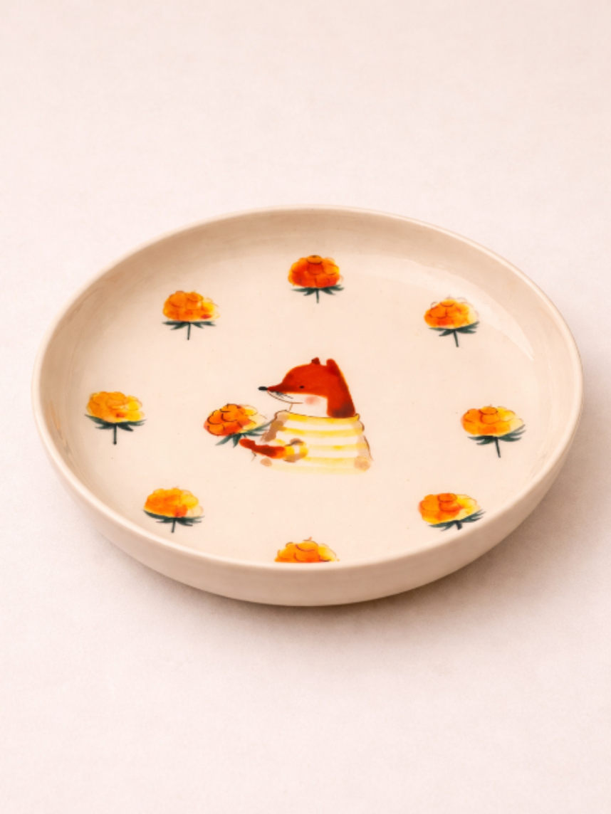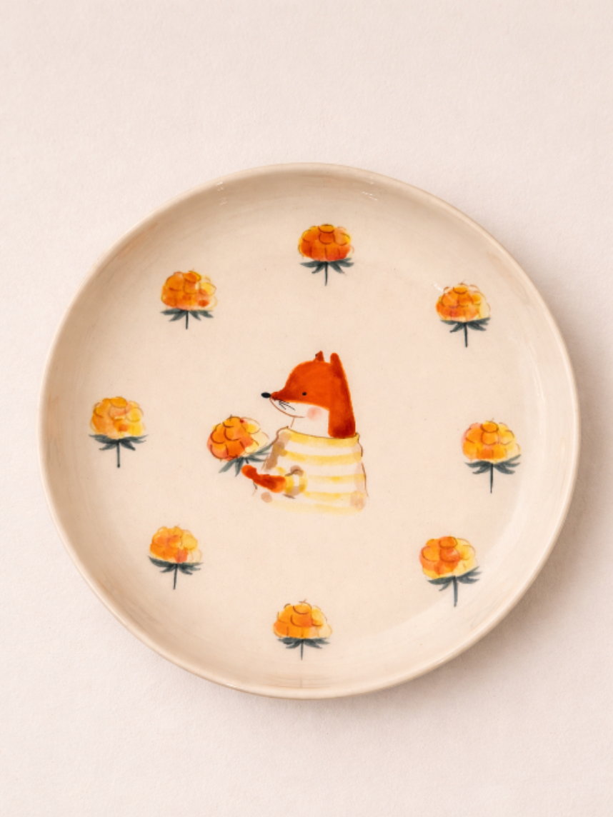 Тарелка ручной работы с бортиком «Лисёнок с морошкой». Производитель - керамистка Ситникова Юлия (Kim.ceramics).