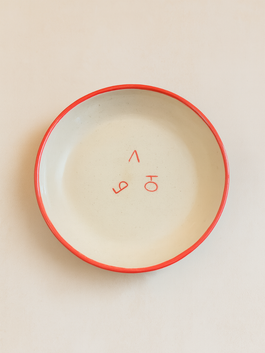 Тарелка ручной работы «Л Ю Б», керамика, 12,5см