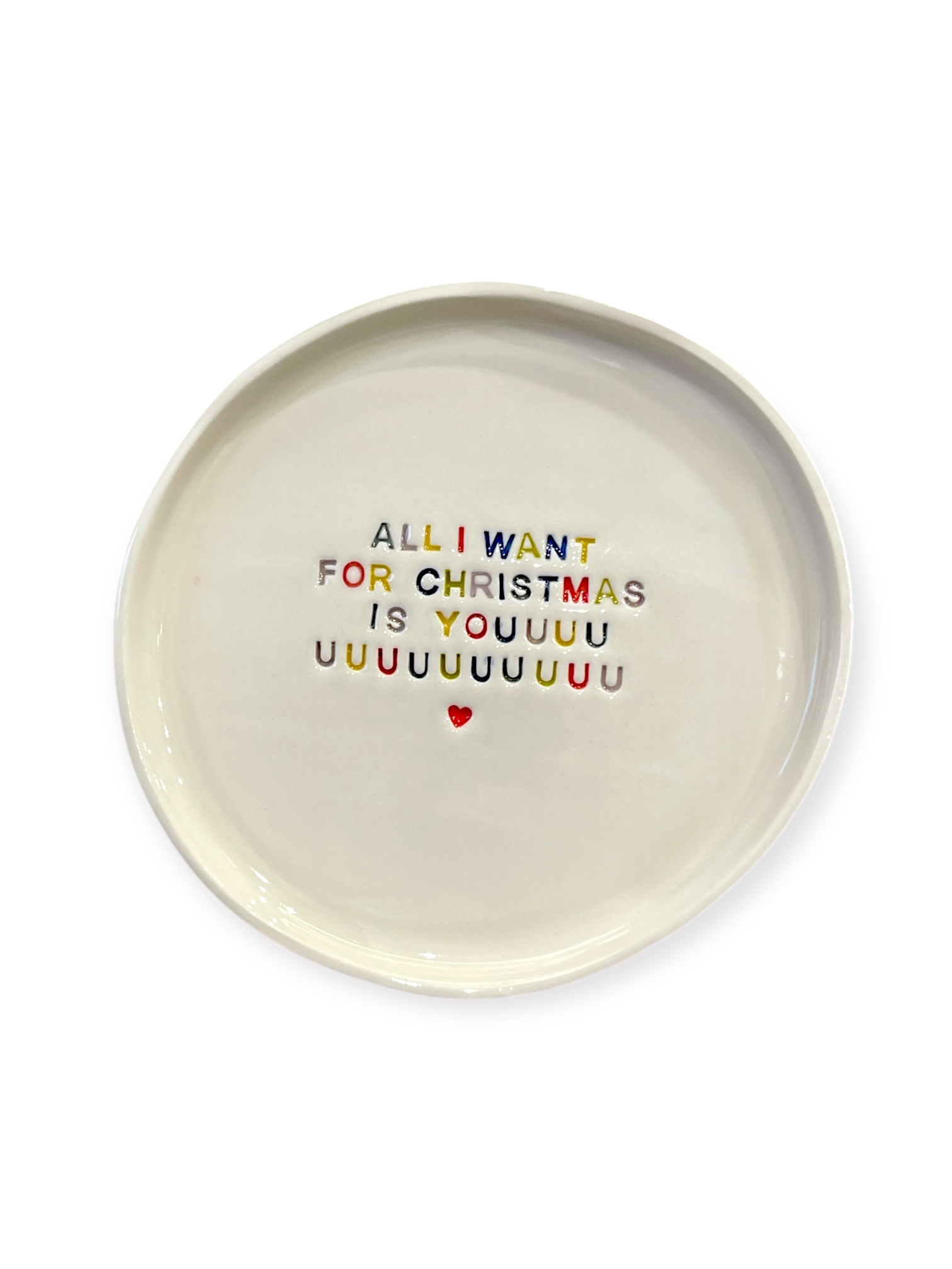 Тарелка ручной работы на Новый год с надписью «All i want for christmas», керамика, 18 см