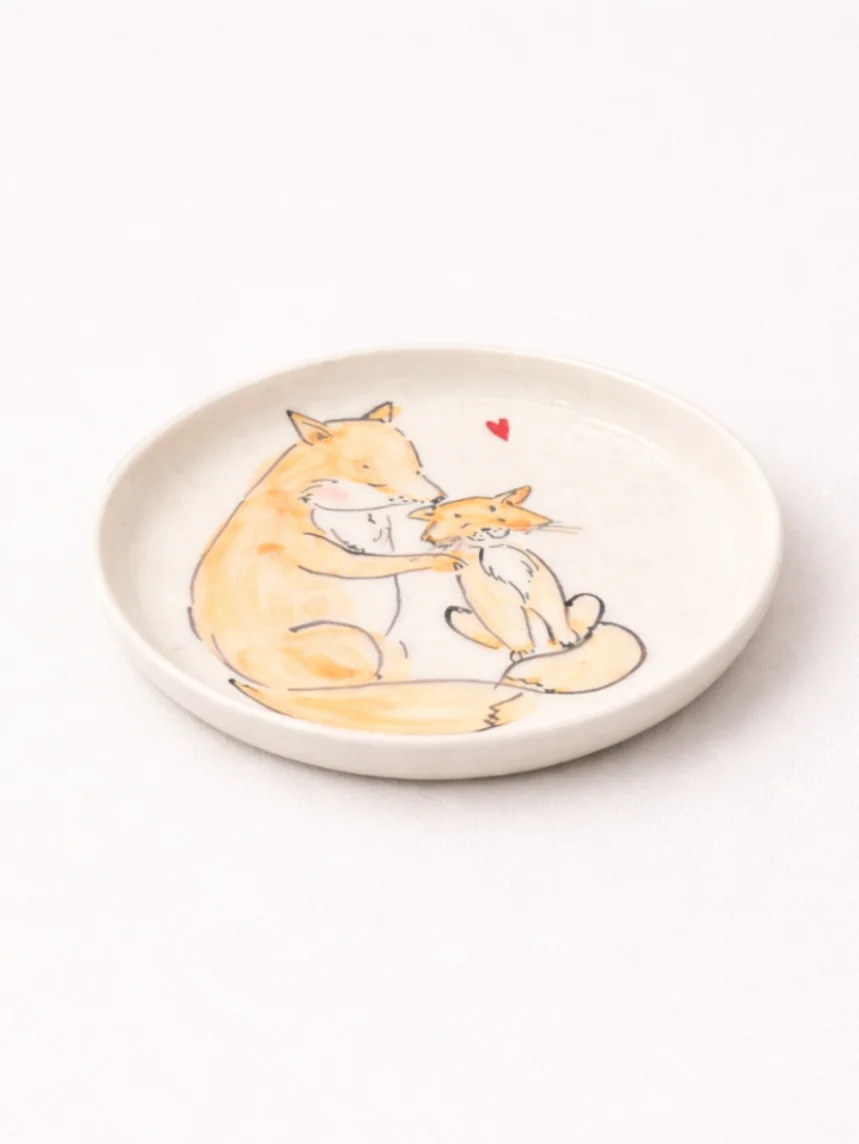 Тарелка ручной работы "НАДО ЖЕ" с росписью «Лис и лисёнок». Эта очаровательная белая керамическая тарелка диаметром 14 см выполнена вручную. Украшена милой росписью с изображением лиса и лисёнка, создавая теплую и уютную атмосферу. Идеальна для сервировки, декора или в качестве подарка. Каждая тарелка — уникальное произведение ручной работы, наполненное теплом и индивидуальностью.