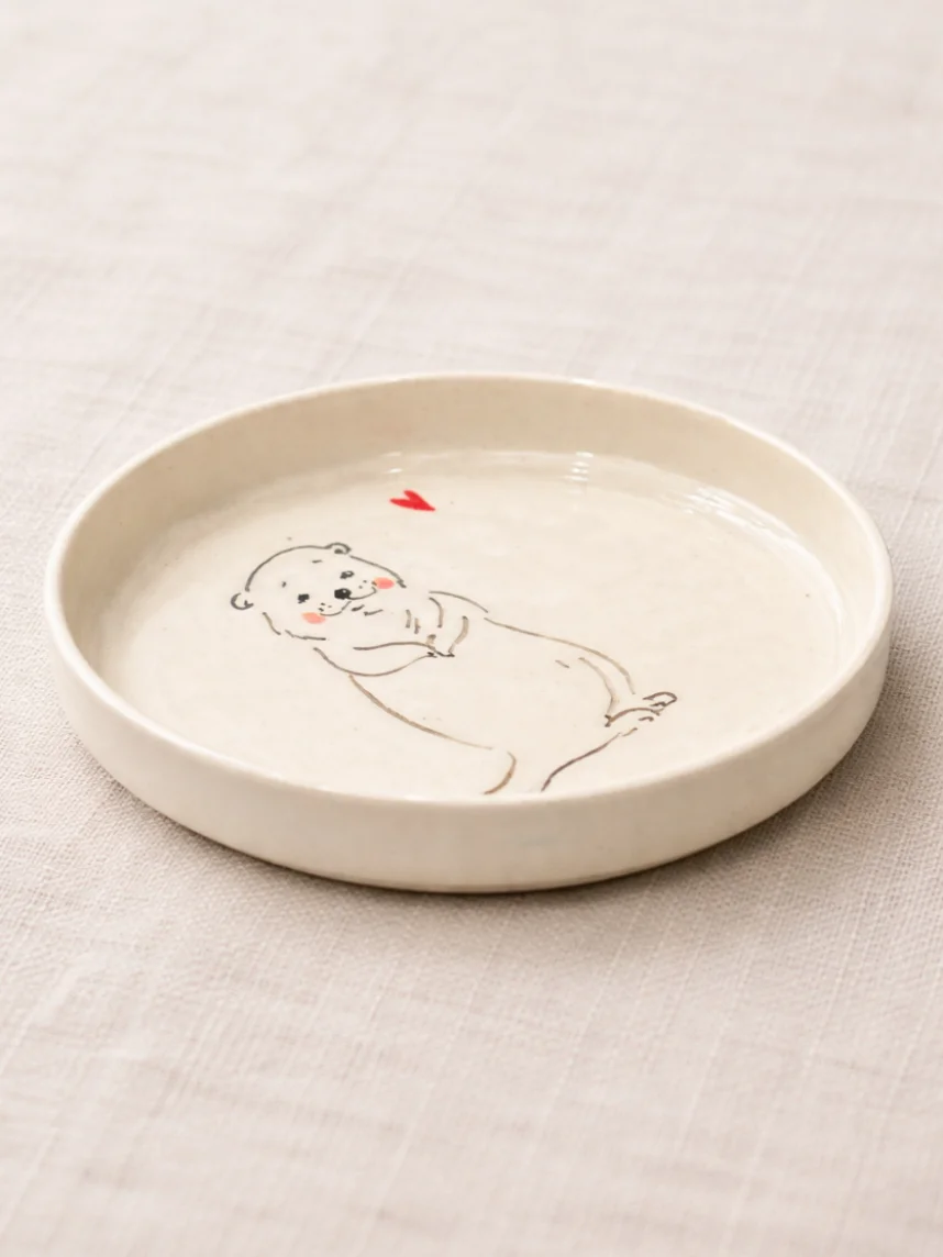 Тарелка ручной работы НАДО ЖЕ с росписью «Выдра», белая, керамика, 14 см