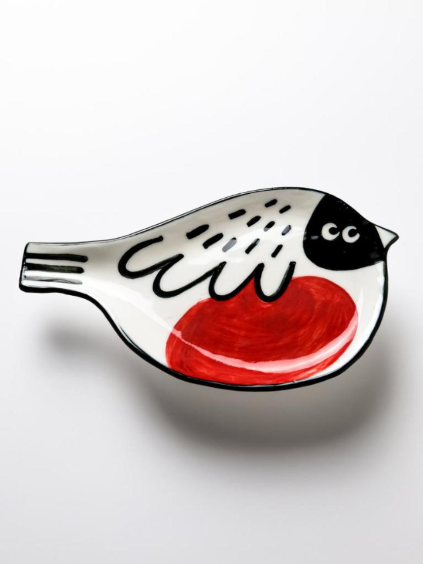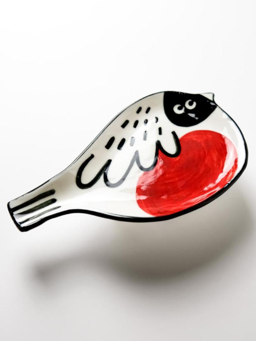 Тарелка ручной работы «Нарядный снегирь» бренда Julnika.
