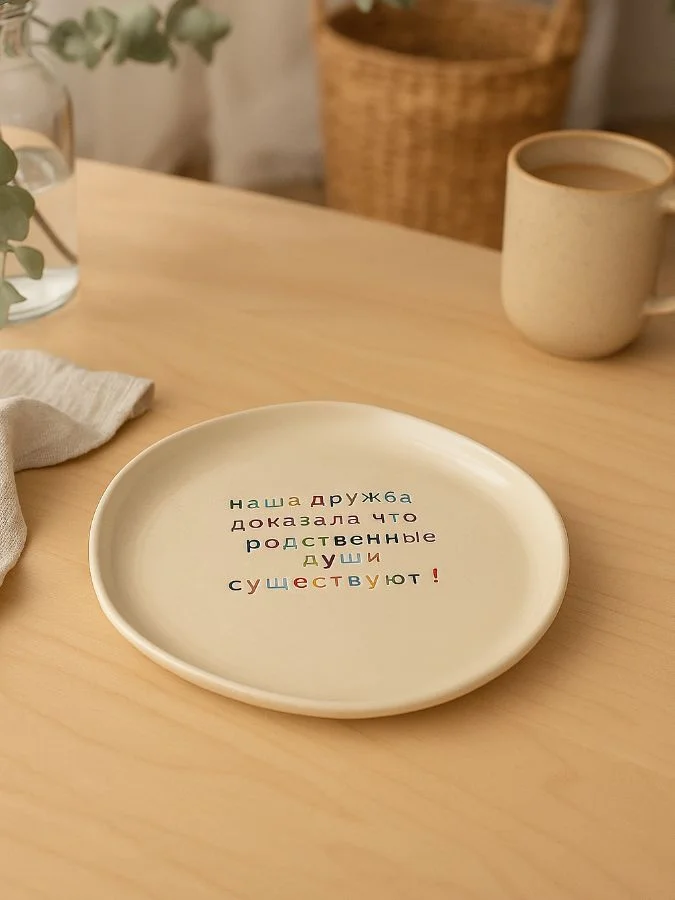 Тарелка ручной работы "Наша дружба доказала" от бренда Yellowscoop станет отличным подарком на любой праздник!