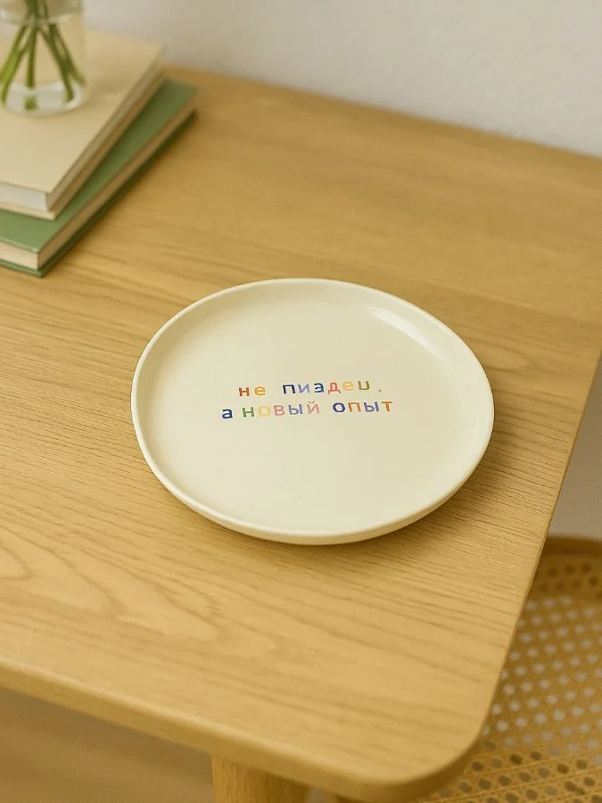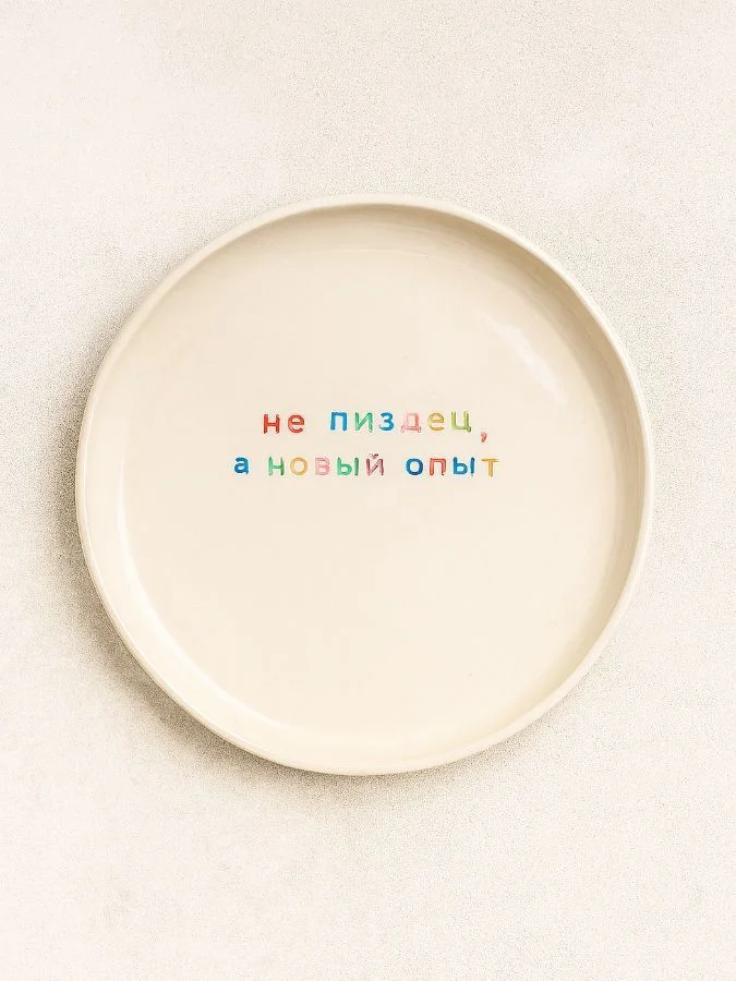 Тарелка ручной работы "Не п*здец, а новый опыт" от бренда Yellowscoop станет отличным подарком на любой праздник!