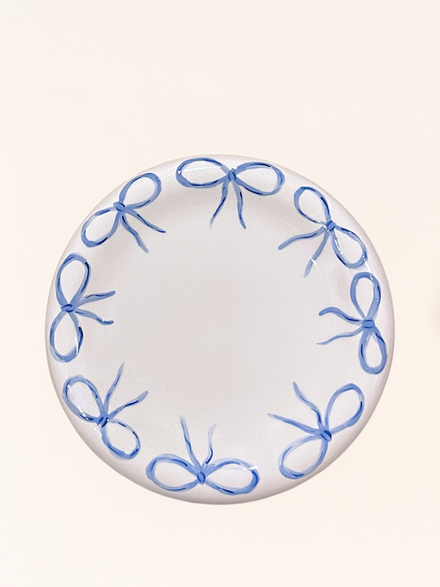 Тарелка ручной работы с бантиками, бело-голубая, керамика, 20 см