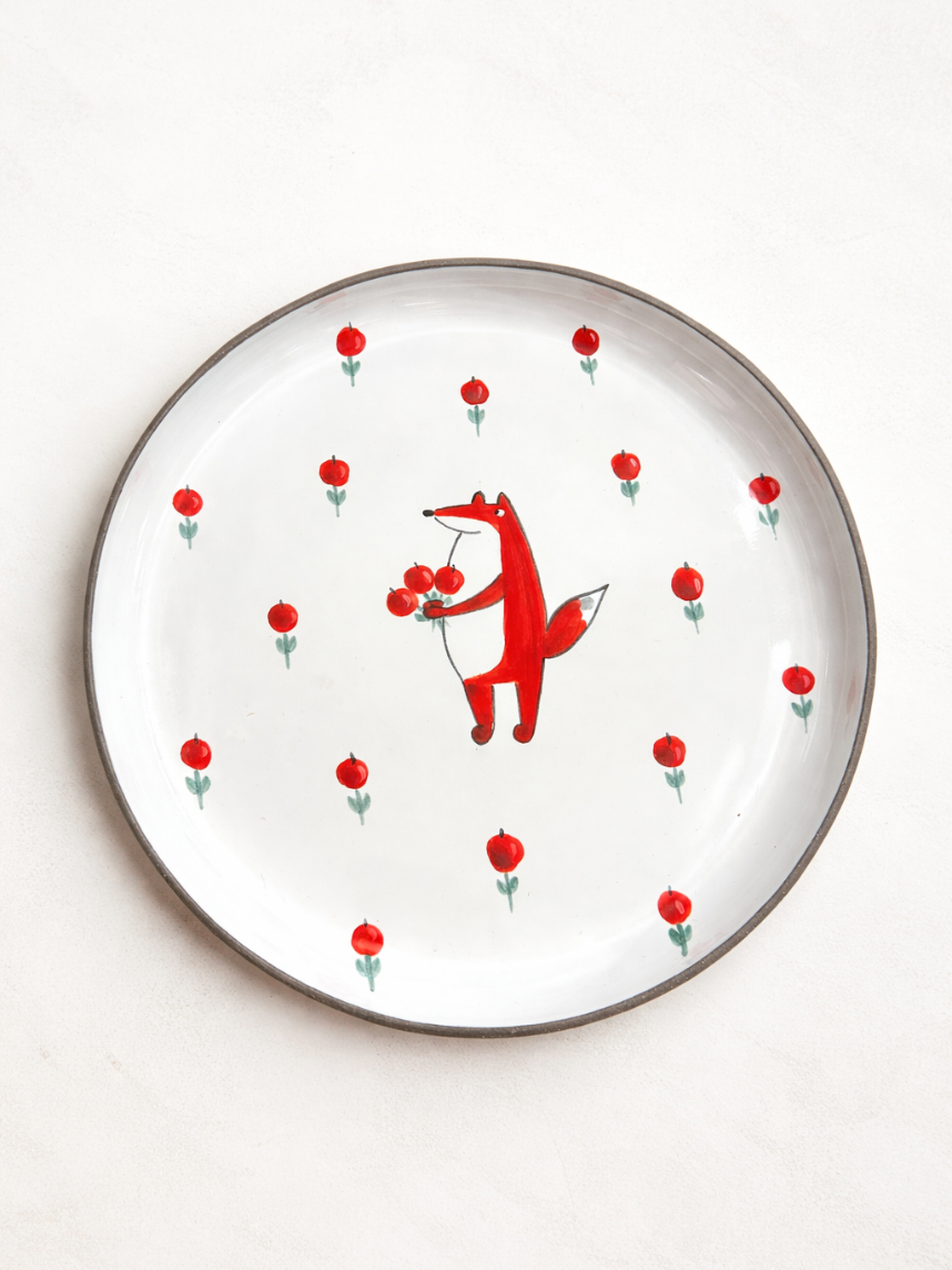 Тарелка ручной работы с бортиком Лис с ягодами, белая, 21 см