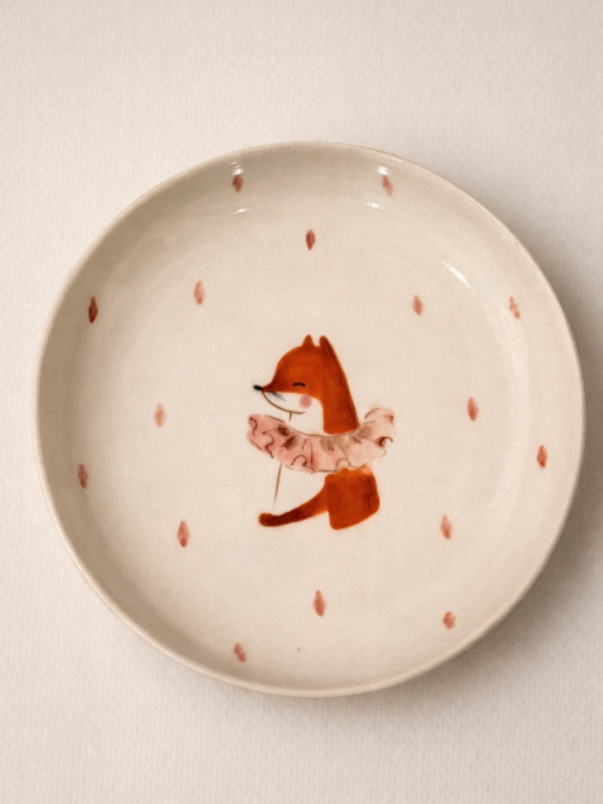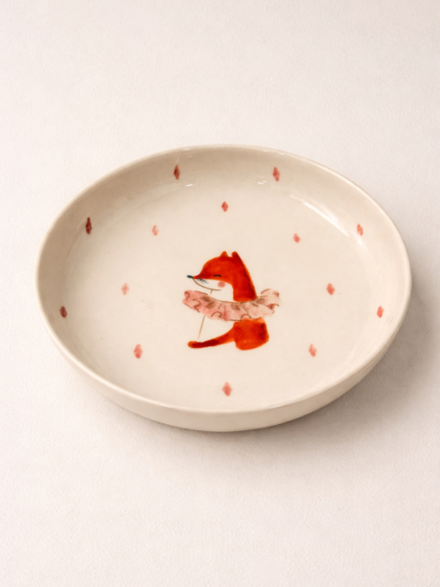 Тарелка ручной работы с бортиком «Лисёнок в жабо с розовыми ромбиками». Производитель - керамистка Ситникова Юлия (Kim.ceramics).