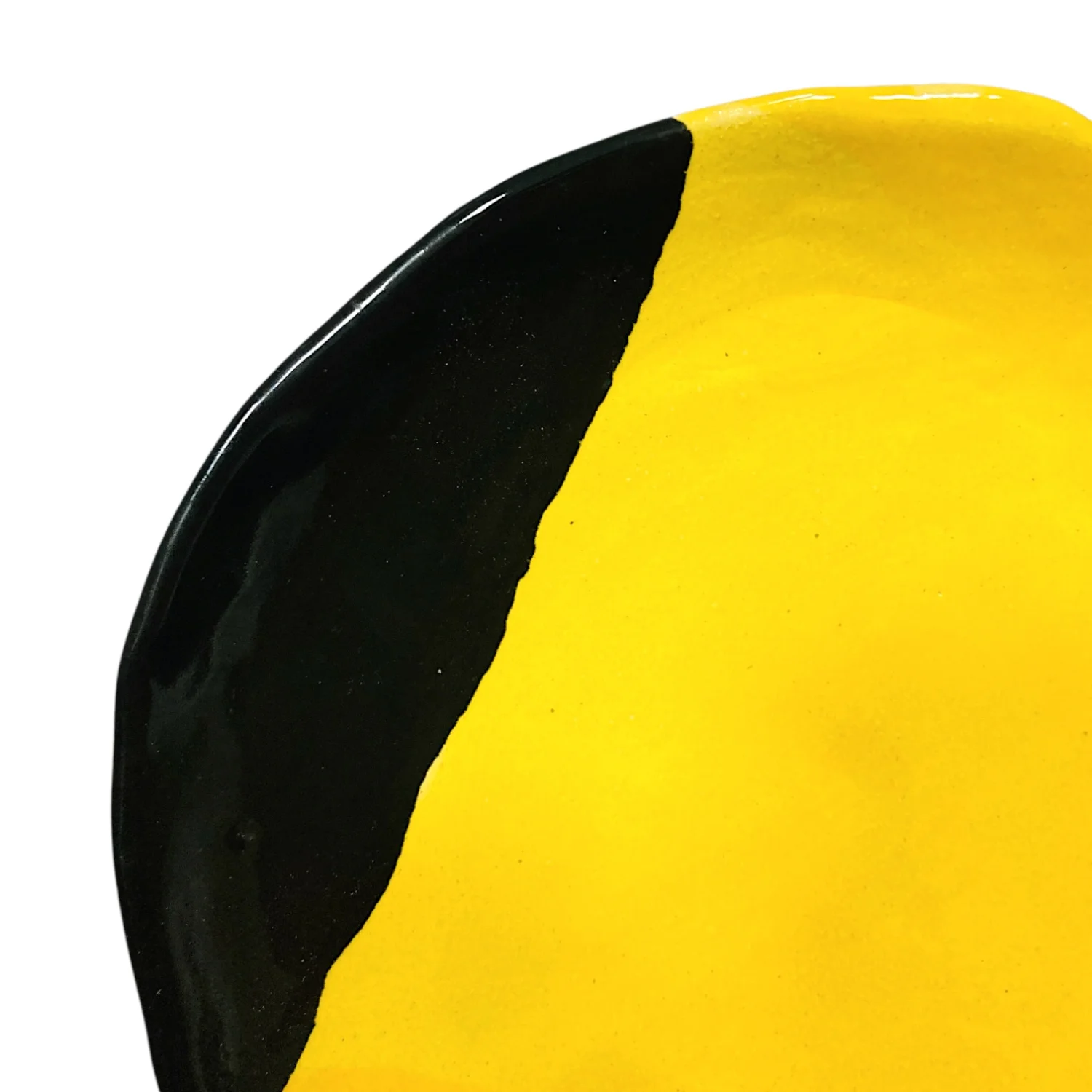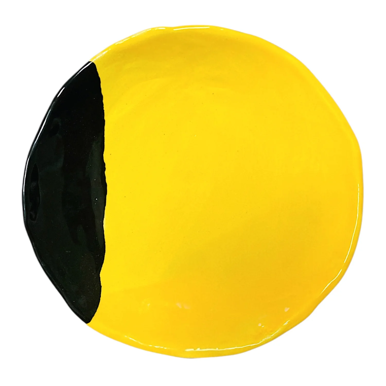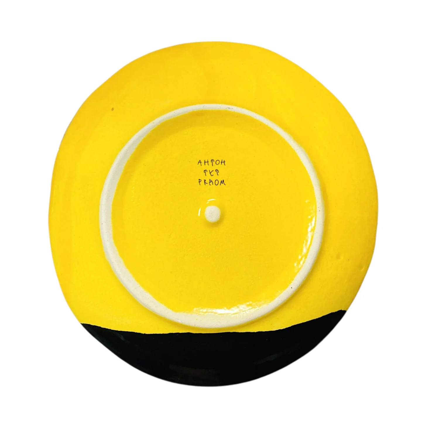 Тарелка ручной работы Антон тут рядом с чёрным краем, жёлтая, керамика, 19 см
