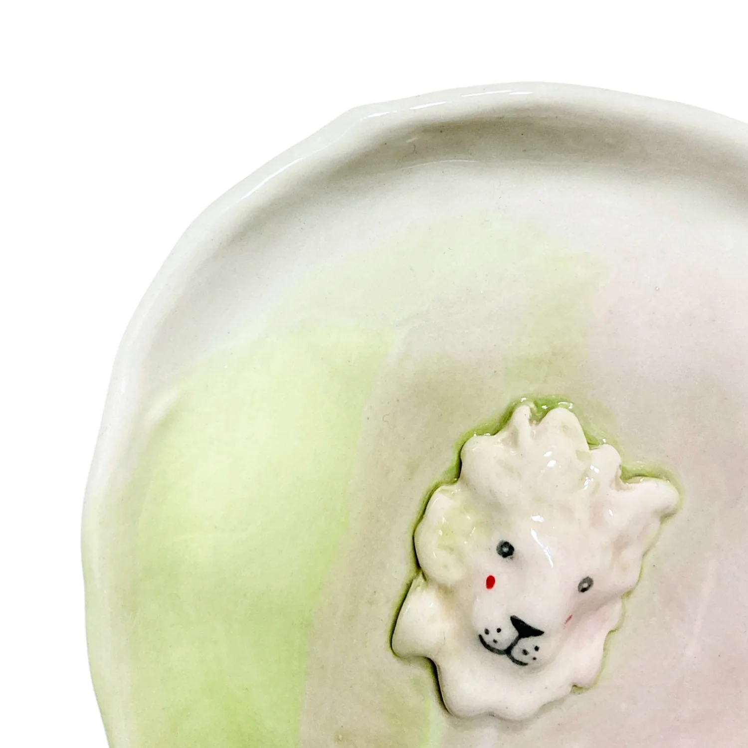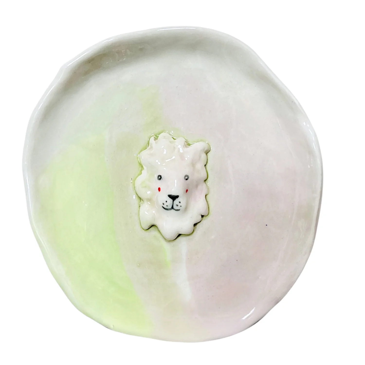 Тарелка ручной работы Мария Гордеева с фигуркой Лев, серо-зелёная , полуфарфор, 13 см