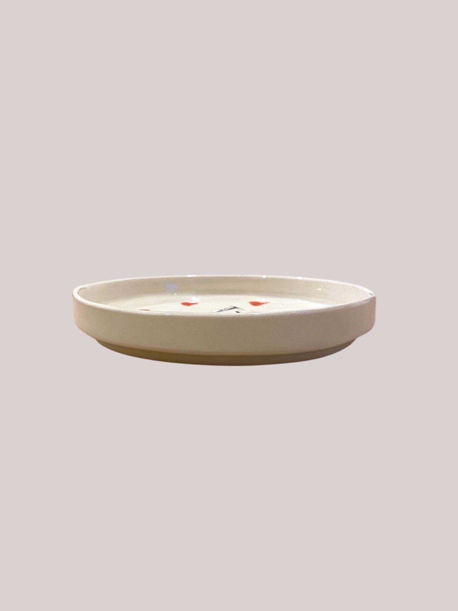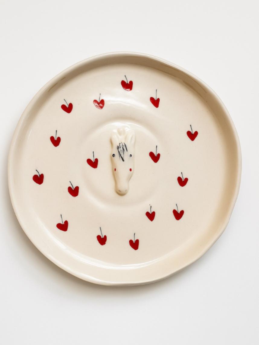 Тарелка ручной работы с фигуркой Лошадка, белая с красными сердечками, полуфарфор, 18 см