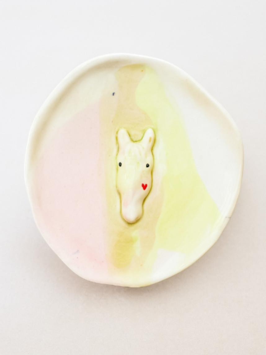 Керамическая тарелка ручной работы «Лошадка» в серо-зелёном цвете от петербургского бренда Gordeeva ceramics является прекрасным образцом сочетания функциональности и искусства.