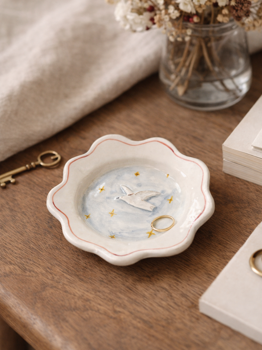 Тарелка ручной работы с росписью, для утонченного интерьера.