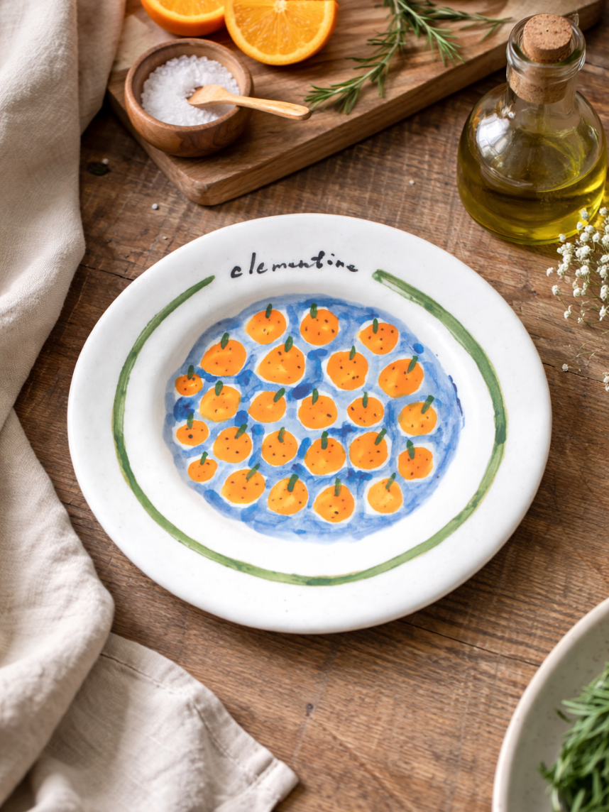 Тарелка ручной работы с клементинами, керамика, 17 см