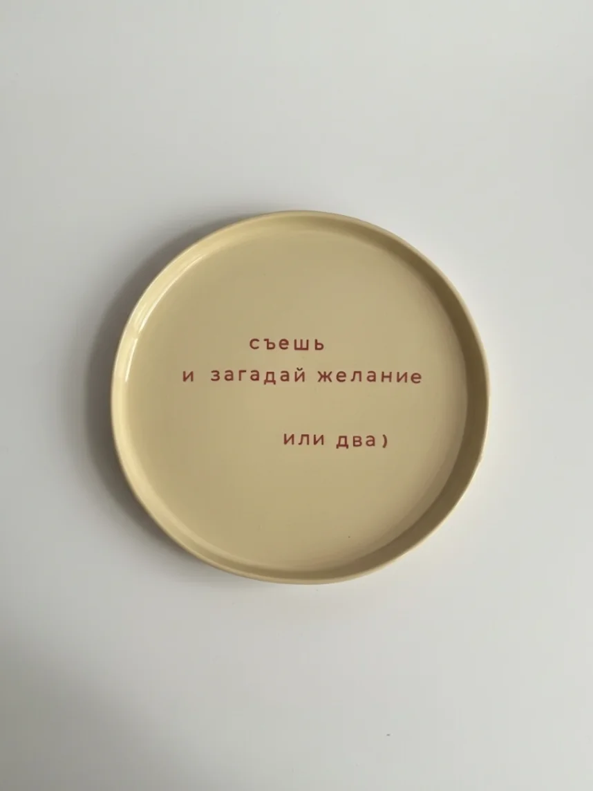 Тарелка ручной работы "Съешь и загадай желание" от бренда Yellowscoop станет отличным подарком на любой праздник!