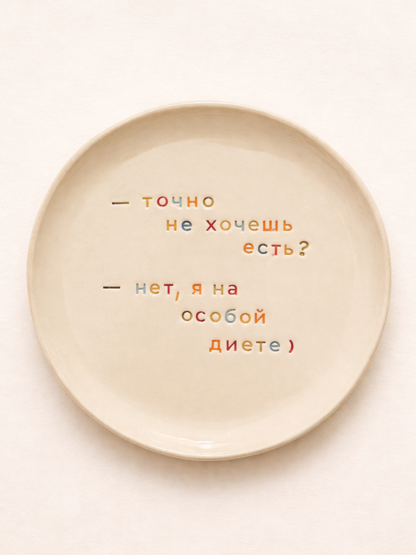 Тарелка ручной работы «-Точно не хочешь есть? - Нет, я на особой диете» от бренда Yellowscoop станет отличным подарком на любой праздник!