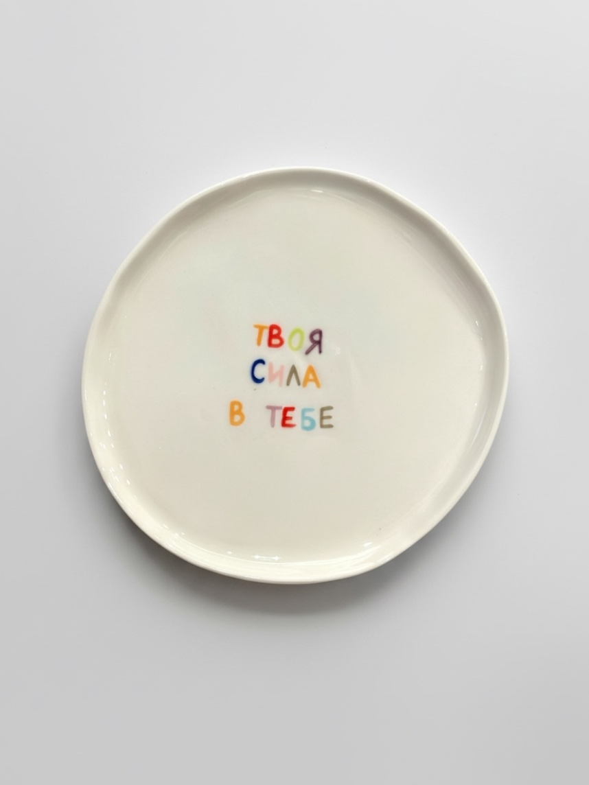 Тарелка ручной работы «Твоя сила в тебе» — оригинальное и выразительное изделие из керамики диаметром 18 см.
