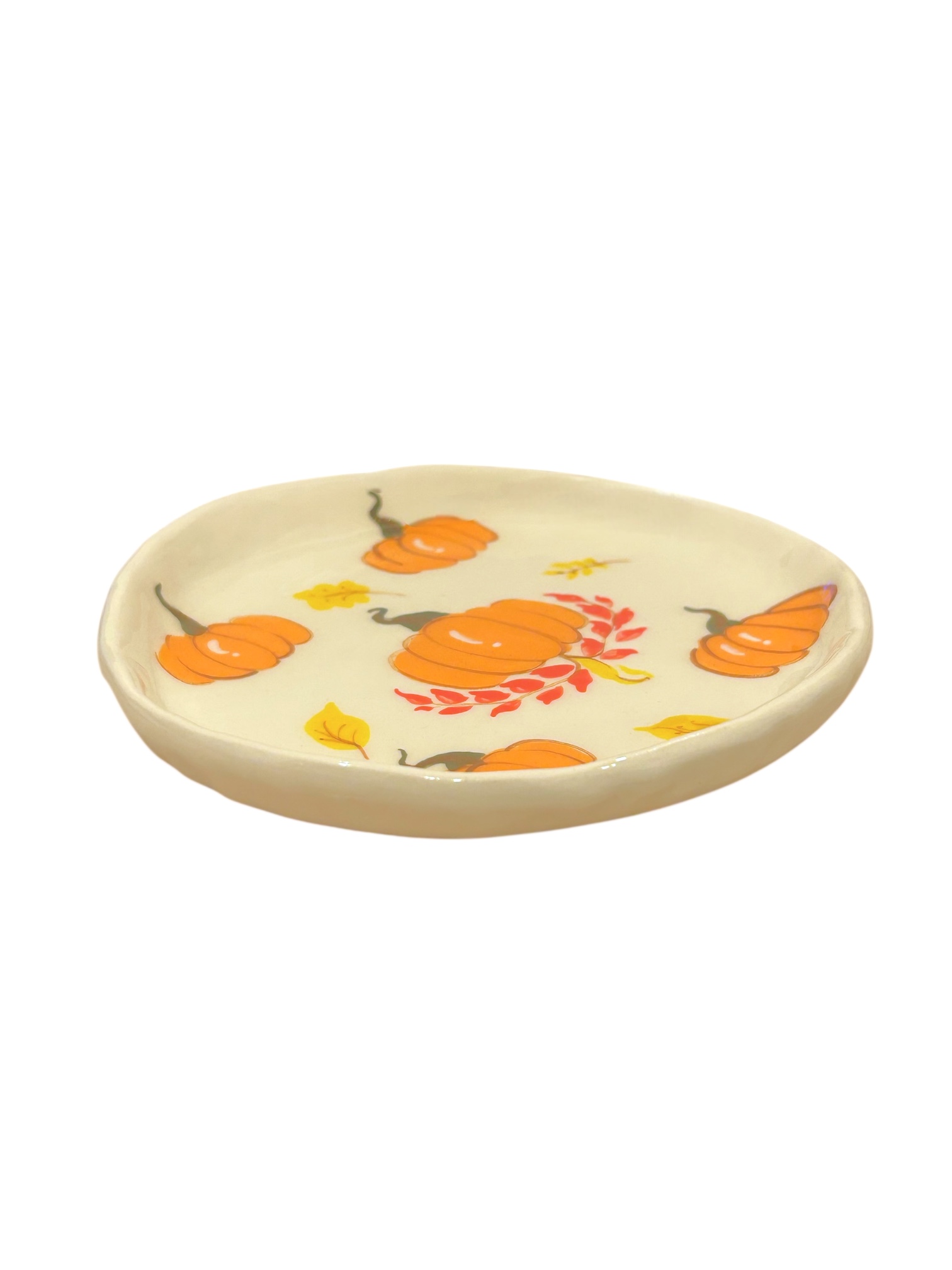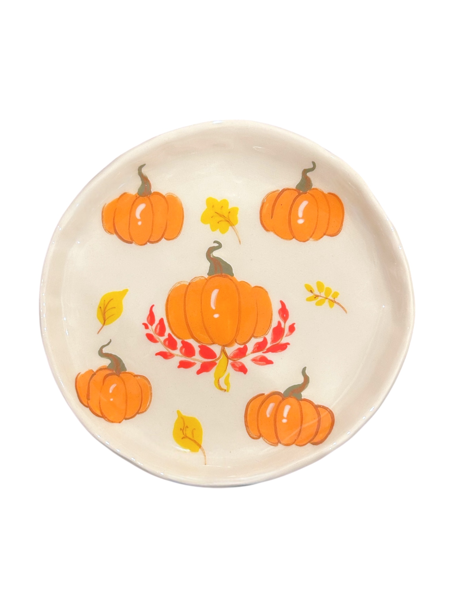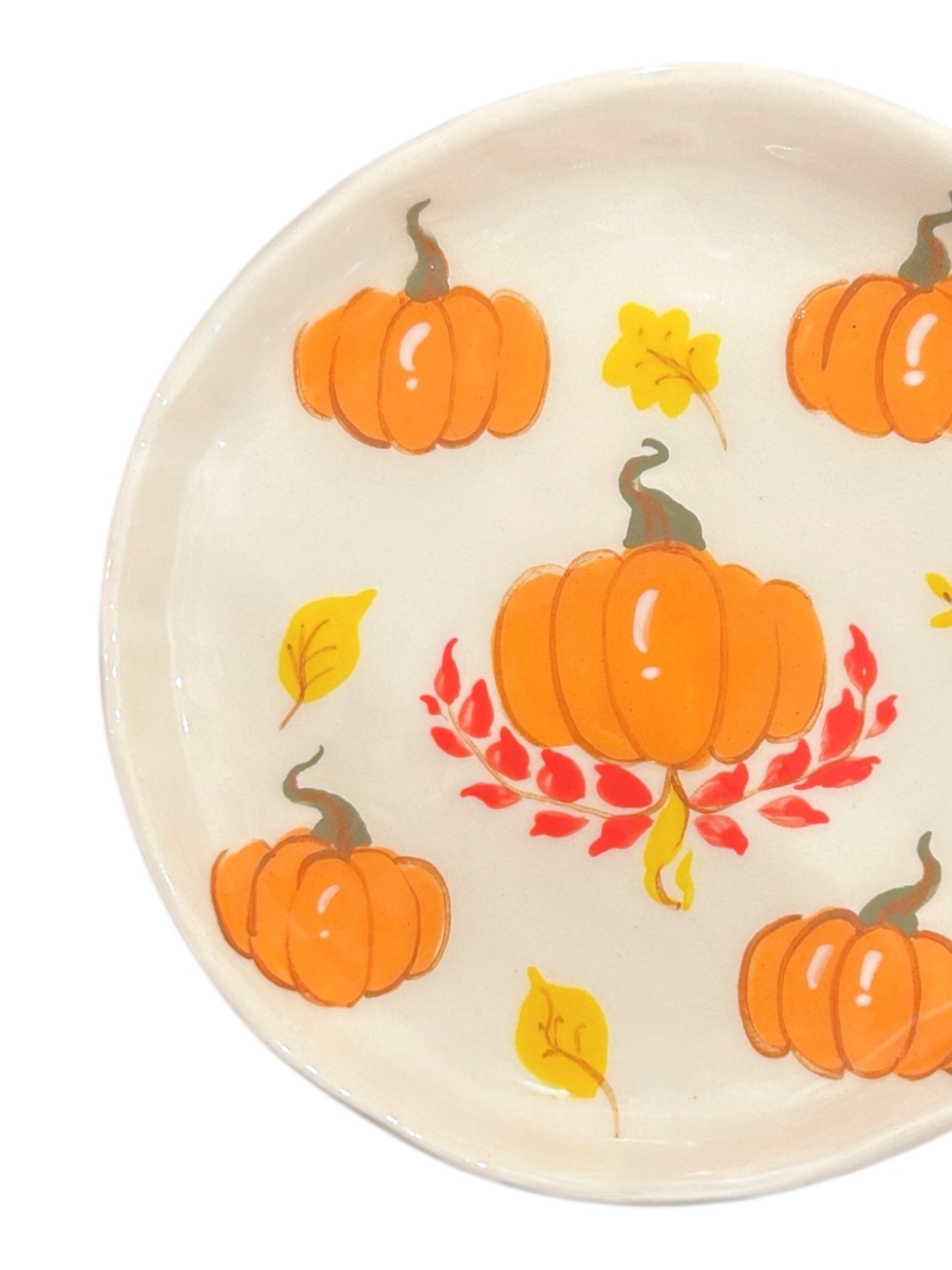 Тарелка с тыквами и листьями – изящная керамика ручной работы, созданная с любовью!