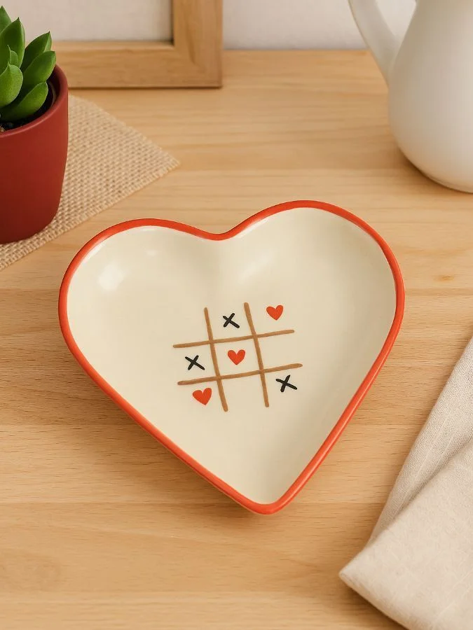 Уникальная тарелка ручной работы в форме сердечка с узором «Крестики / сердечки» — это изысканное и оригинальное изделие, созданное с любовью и вниманием к деталям.