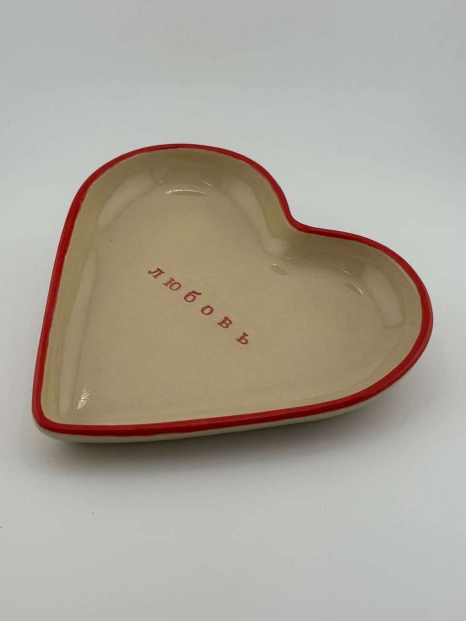 Тарелка ручной работы в форме сердечка «Любовь» — это изыскательное и трогательное изделие, созданное с любовью и вниманием к деталям.