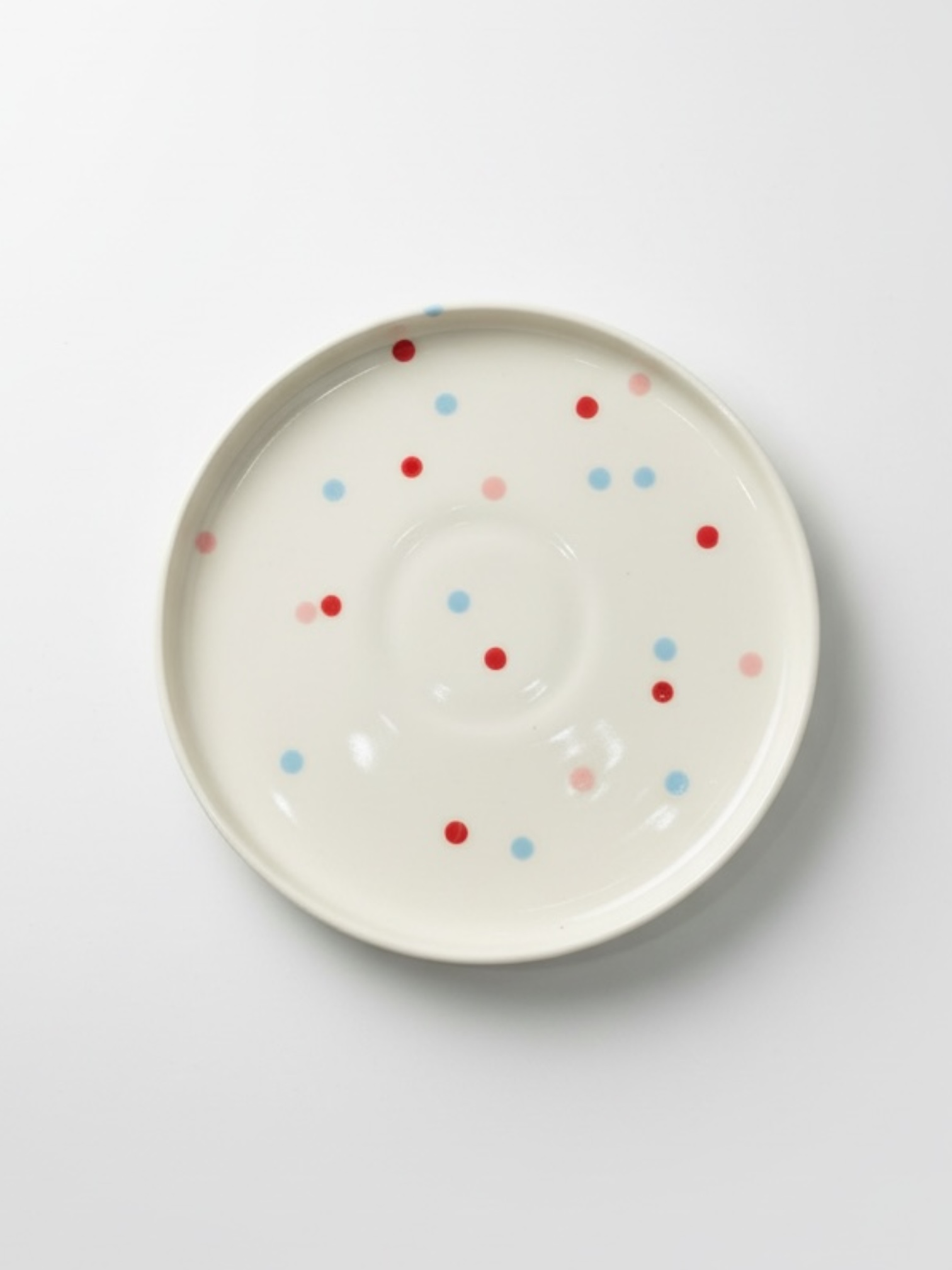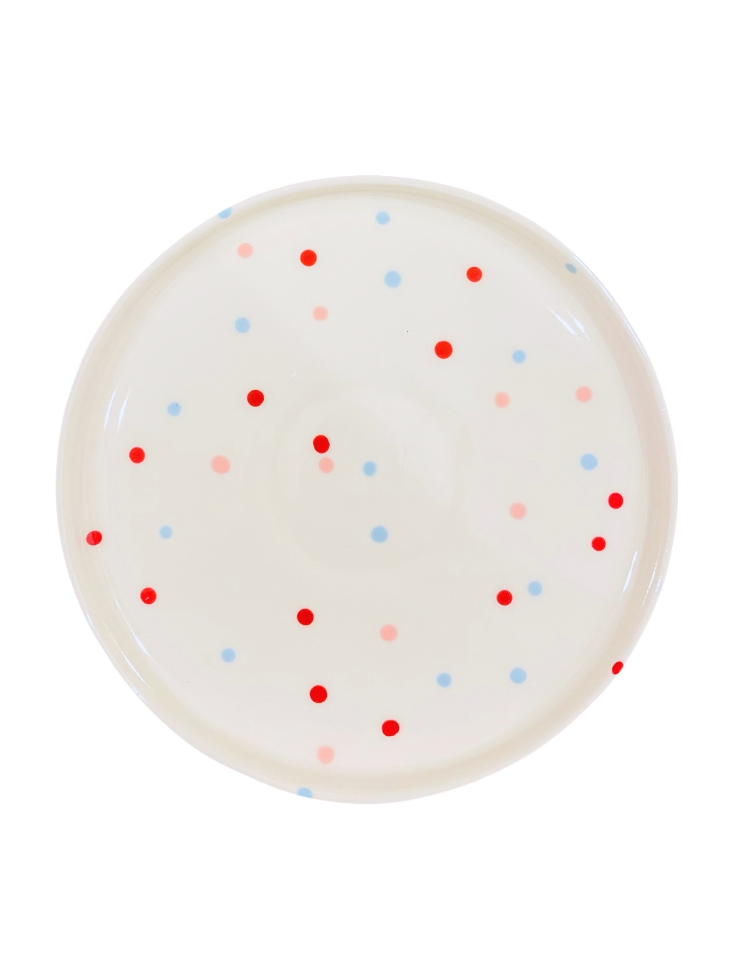 Тарелка ручной работы в разноцветный горошек, белая, керамика, 23 см