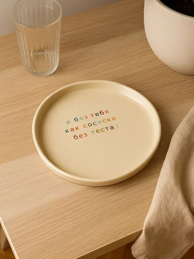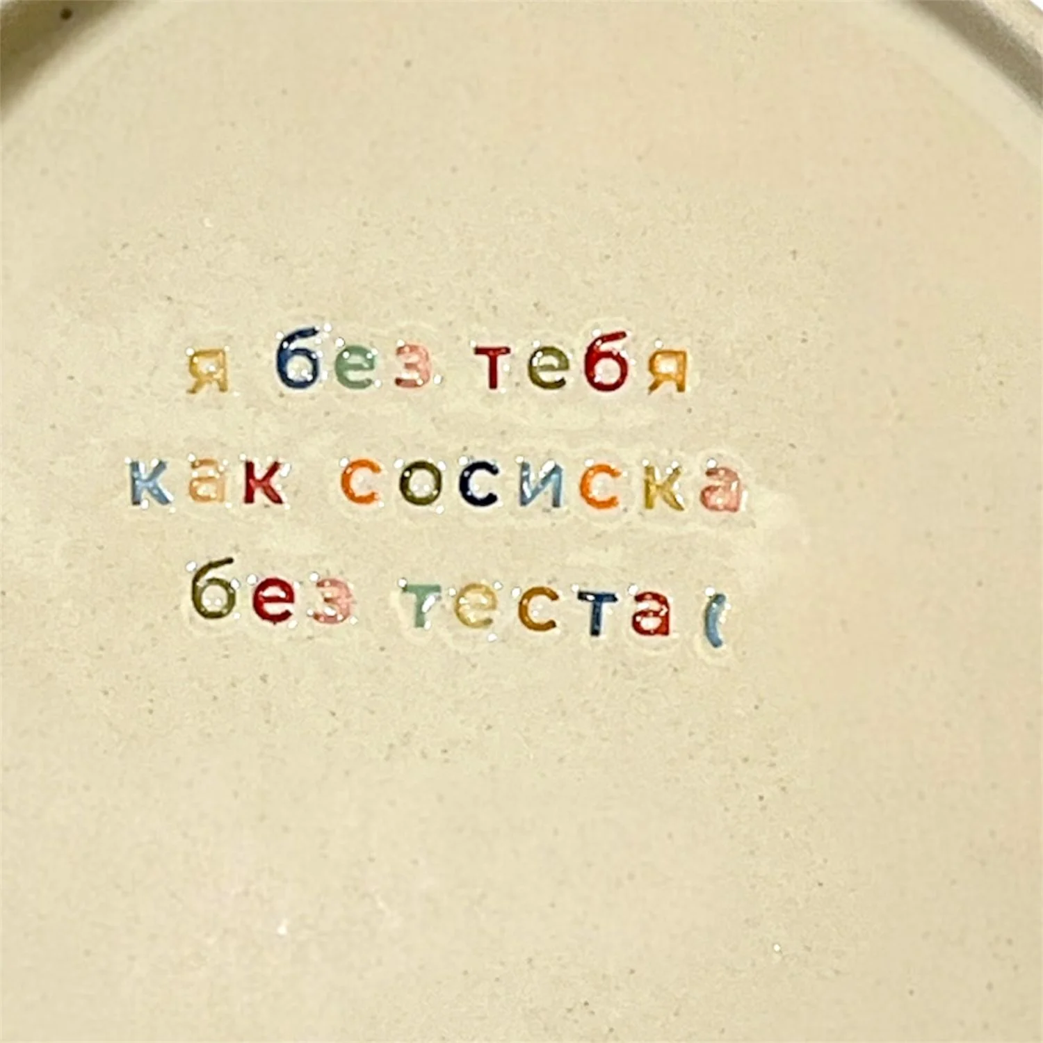 Тарелка ручной работы "Я без тебя как сосиска без теста" от бренда Yellowscoop станет отличным подарком на любой праздник!